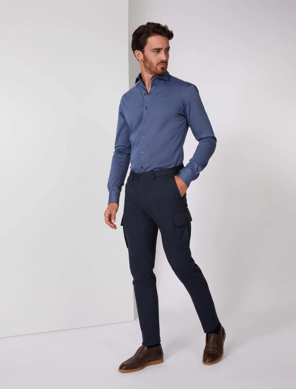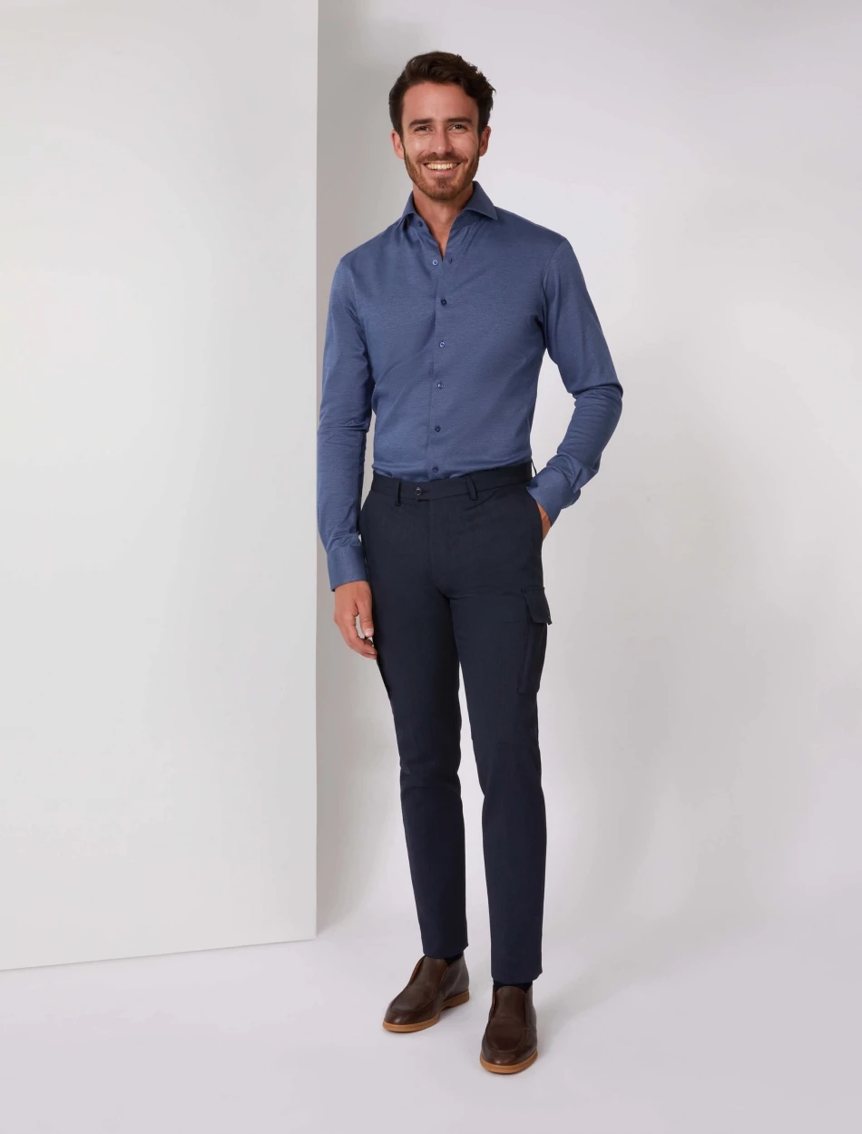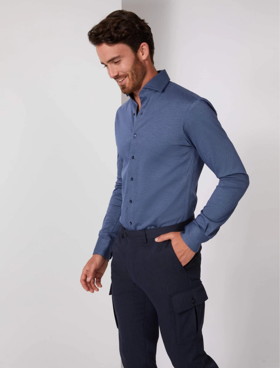 Basilio is een overhemd die niet mag ontbreken in je garderobe. Het Basilio overhemd is gemaakt van een jersey kwaliteit wat zacht en comfortabel aanvoelt. Het overhemd is voorzien van een widespread kraag en enkel manchet. Combineer het Basilio overhemd met een pantalon en luxe afgewerkt vest voor een complete look.