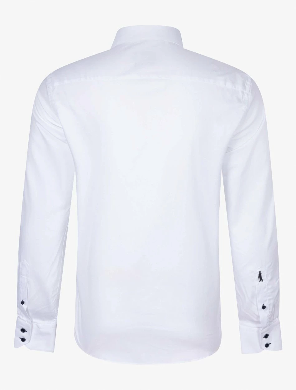 Biaglio overhemd is een perfect wit overhemd met een extra touch. Biaglio overhemd is gemaakt van 100% katoen en heeft een ‘Doppio Ritorto’ weving wat inhoud dat het doek dikker is en structuur heeft in de stof. De binnenkant van de kraag is geprint en de knopen en stiksels zijn een contrasterende blauwe kleur. Combineer het Biaglio overhemd met een pantalon en colbert voor een complete look.