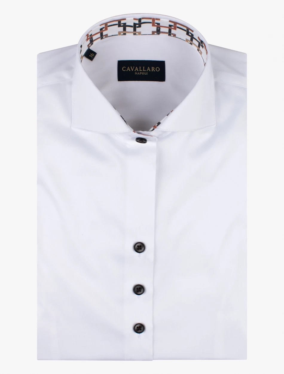Biancella blouse is een perfecte witte blouse om eindeloos te combineren met onze gehele collectie. De Biancella blouse heeft een slim fit pasvorm, klassieke kraag en is gemaakt van een katoenblend. De geprinte binnenkant van de kraag en gemêleerde knopen zorgen ervoor dat deze blouse net even anders is.