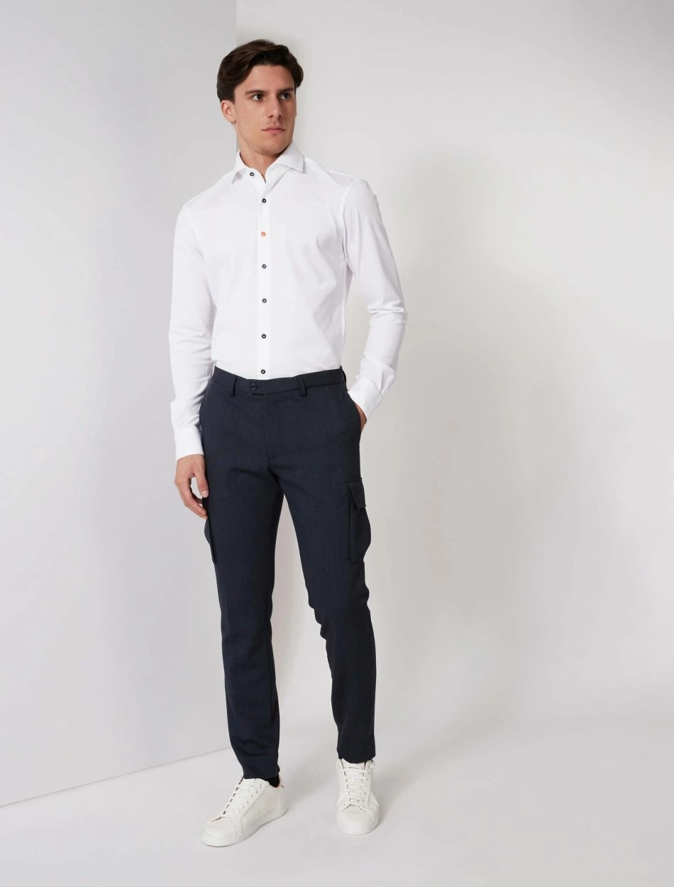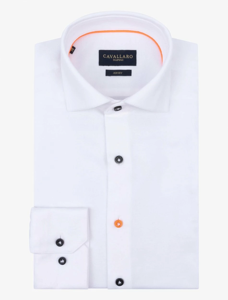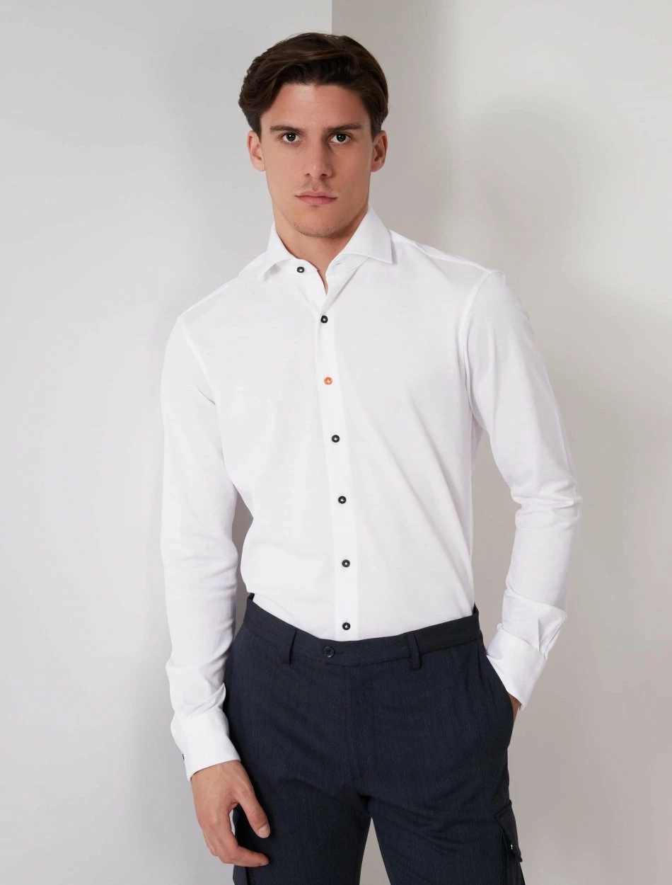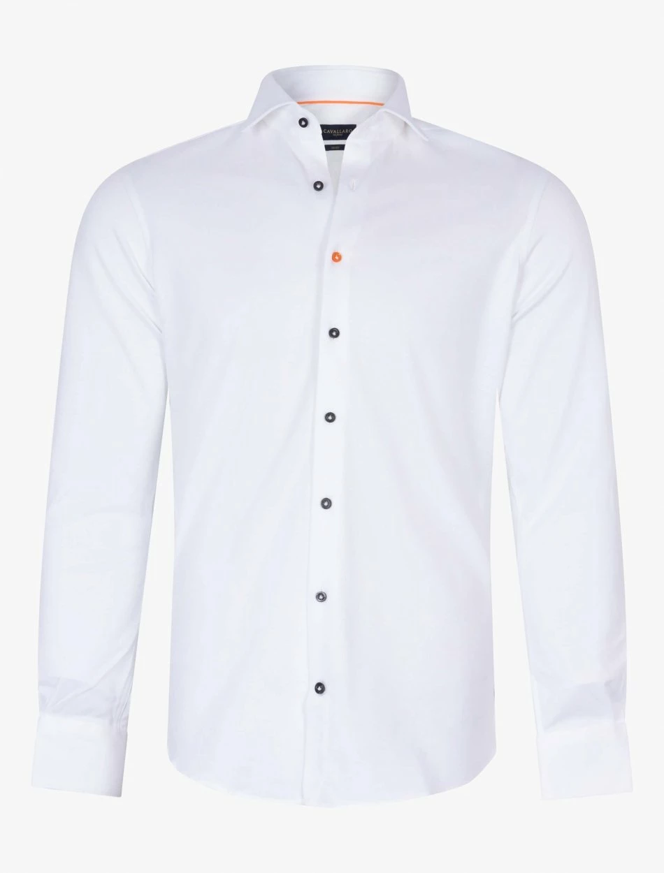 Campione overhemd is onderdeel van onze WK collectie. Het Campione overhemd heeft een slim fit pasvorm en een widespread kraag. Dit overhemd is gemaakt van 100% katoen in een Jersey kwaliteit. Hierdoor zit er veel stretch in het overhemd en voelt het overhemd comfortabel aan. Het Campione overhemd heeft glanzende knopen en één oranje knoop, wat zorgt voor een speelse twist. Combineer het Campione overhemd met je favoriete pantalon en colbert voor een complete look. Het Campione overhemd is verkrijgbaar in twee kleuren.