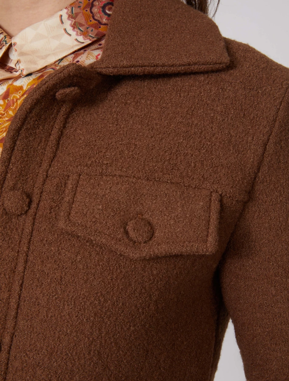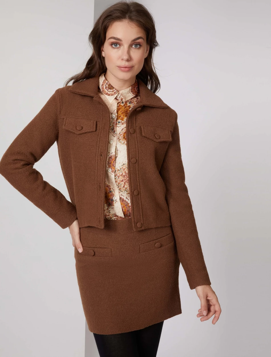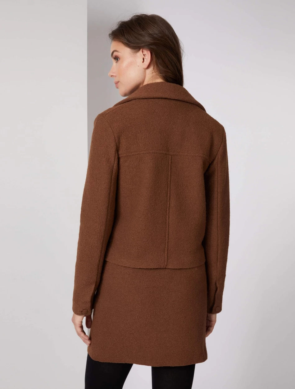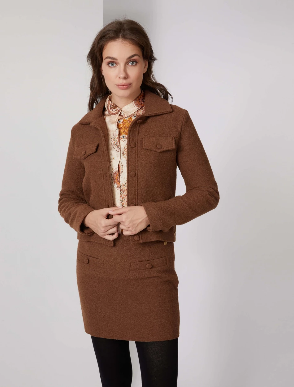 Clarina blazer is een echt fashion statement in je garderobe. De Clarina blazer is een kort model blazer van een boiled wool materiaal in een warme tinten. Deze blazer heeft een regular fit en is gemaakt van 52% scheerwol waardoor dit jasje lekker warm is tijdens de koude winterdagen. Deze blazer heeft klepzakken ton-sur-ton knopen. Combineer de Clarine blazer met de bijpassende jurk of rokje voor een complete look.