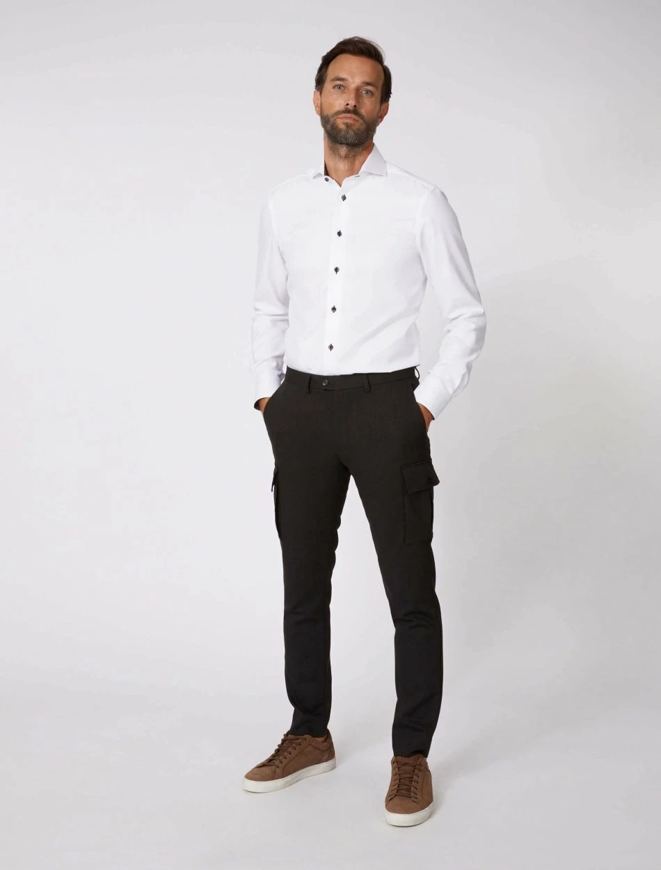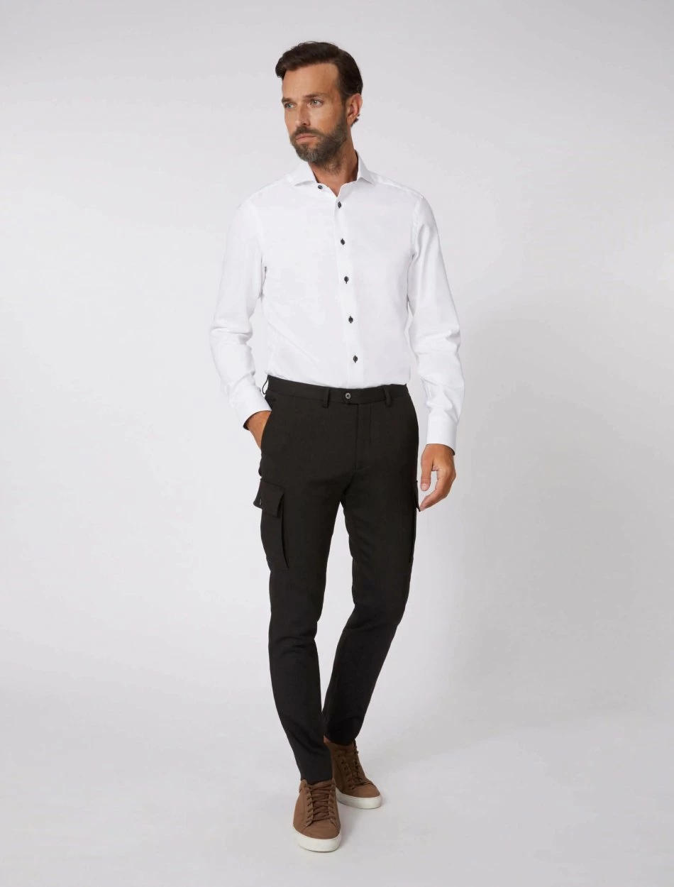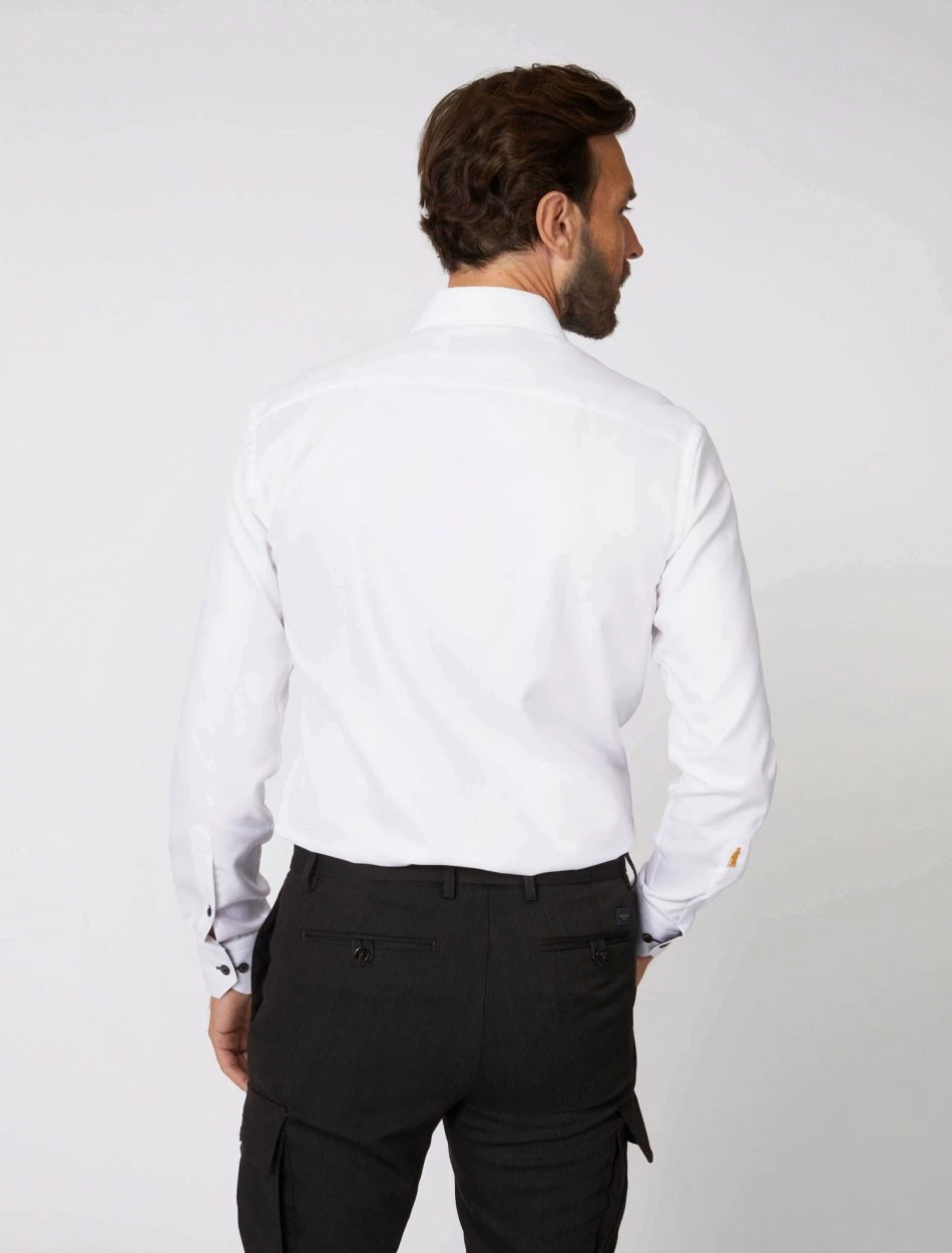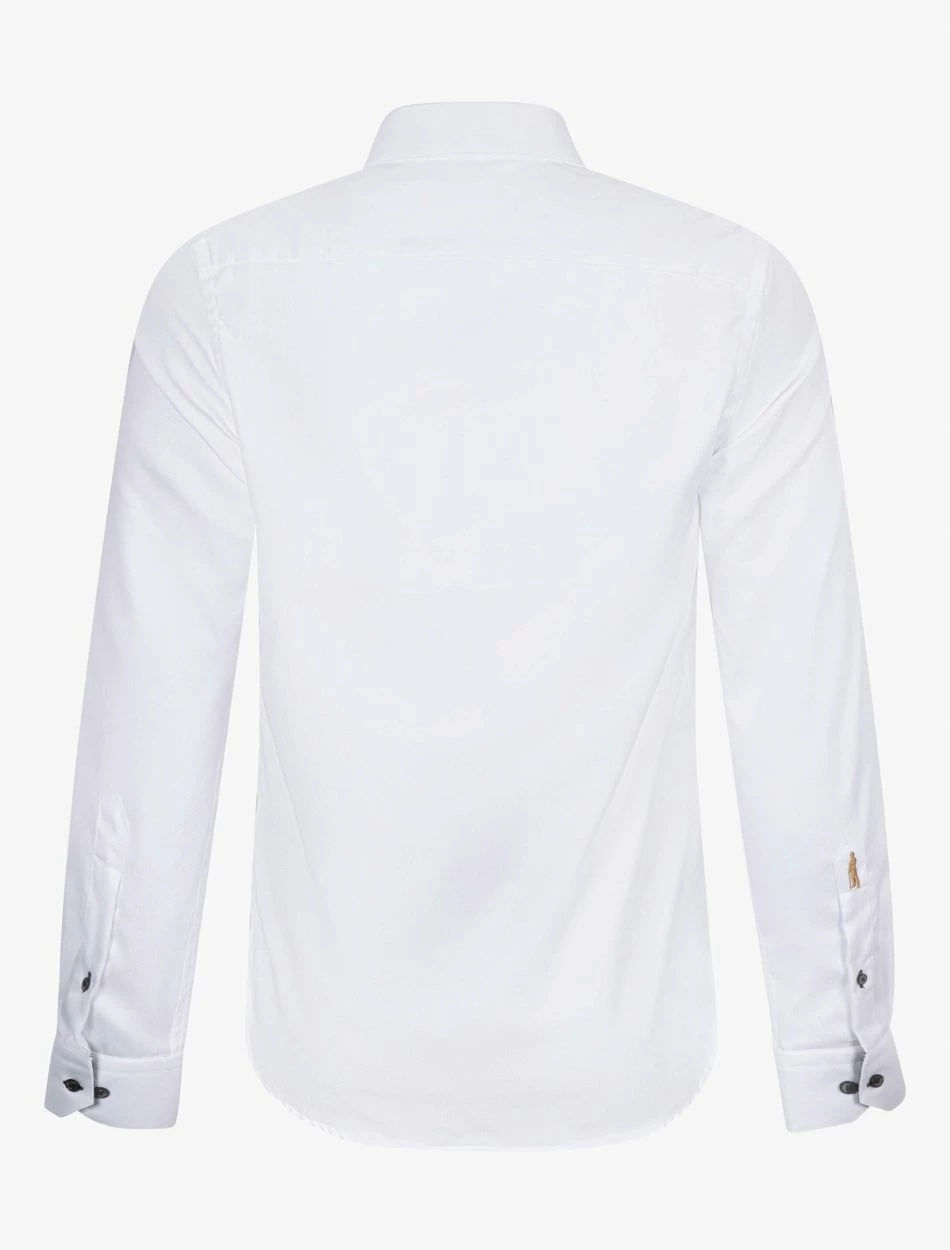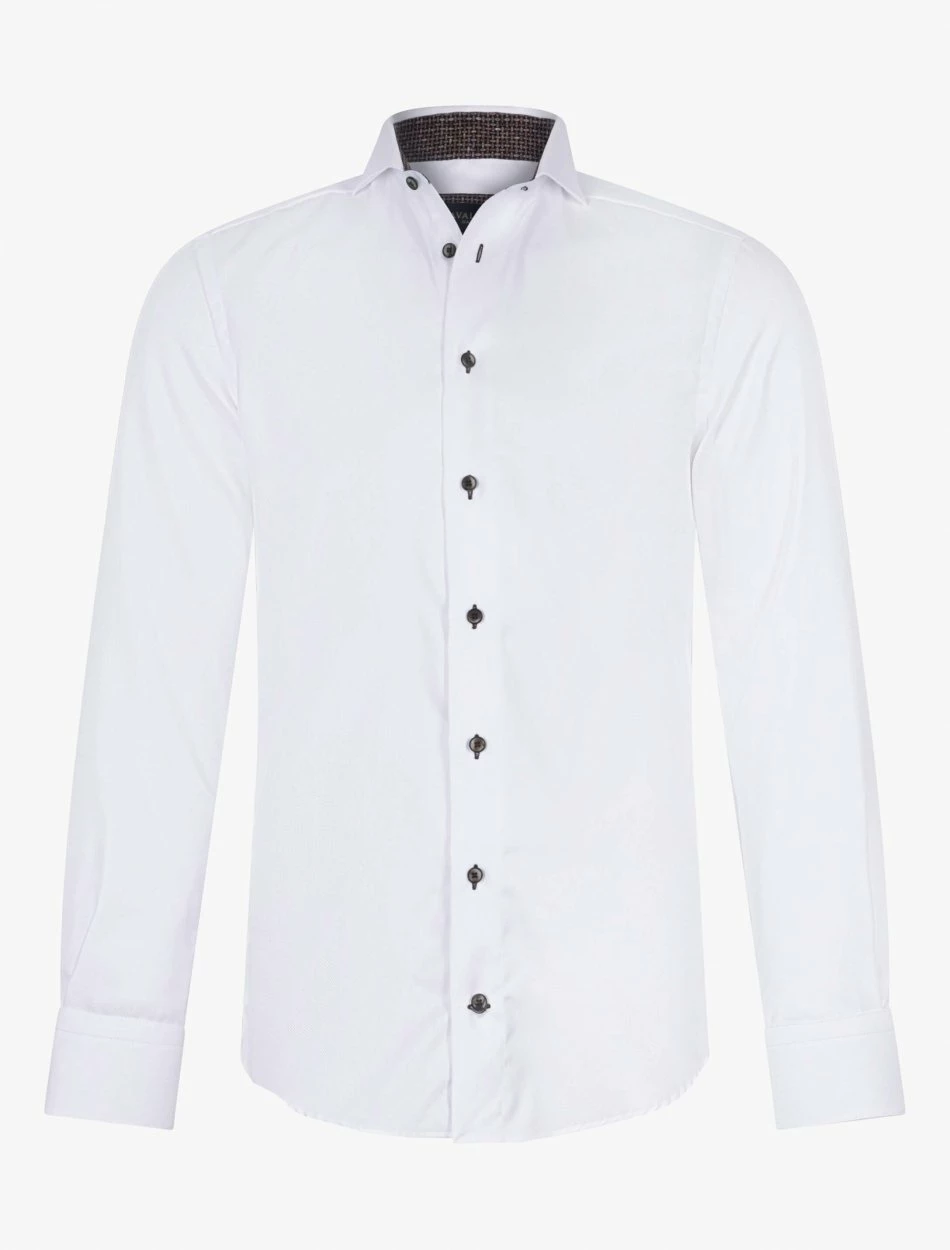 Dundio overhemd heeft een slim fit pasvorm en is gemaakt van 100% katoen. Deze pasvorm en kwaliteit zorgen ervoor dat het overhemd comfortabel aanvoelt en de perfecte fit heeft. Dundio overhemd heeft een print aan de binnenkant van de kraag en enkel manchet. De knopen hebben een chique uitstraling en geven dit overhemd een extra touch. Combineer het Dundio overhemd met een pantalon, colbert en pullover voor een complete look.