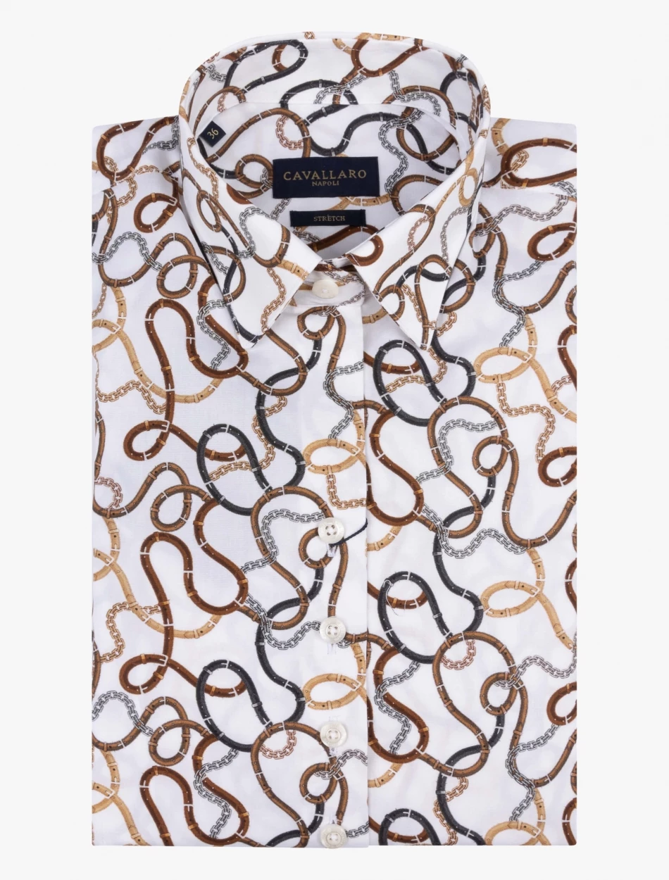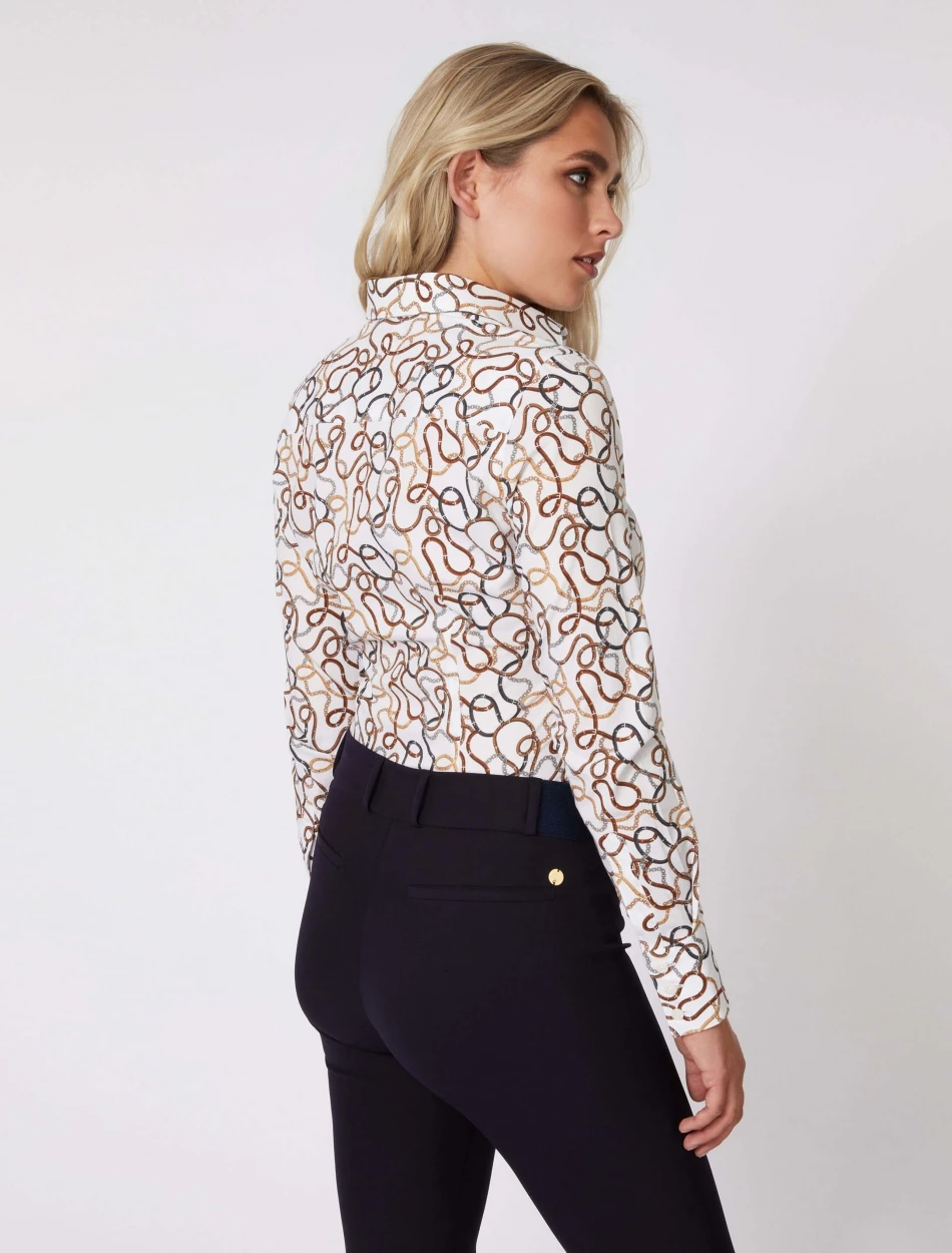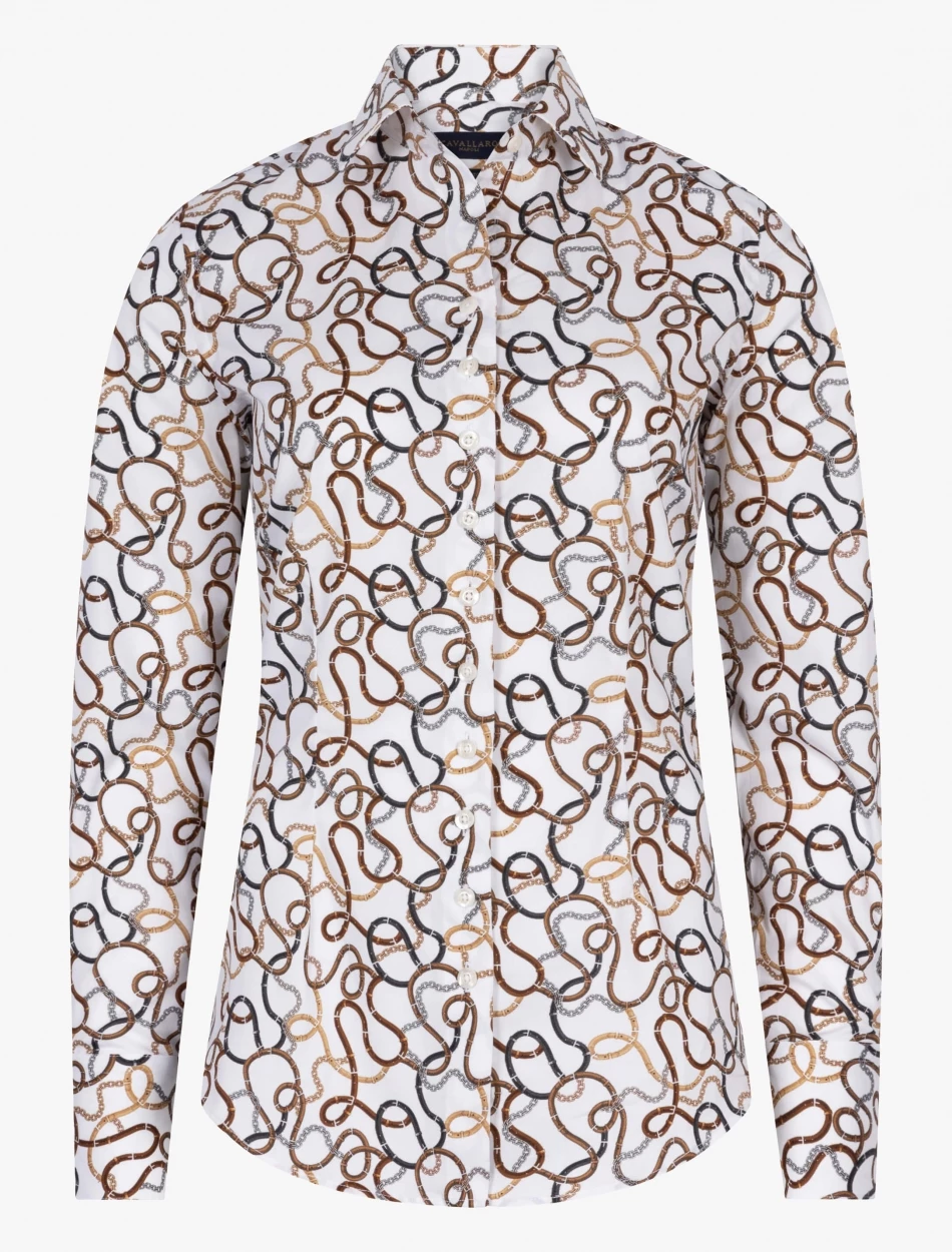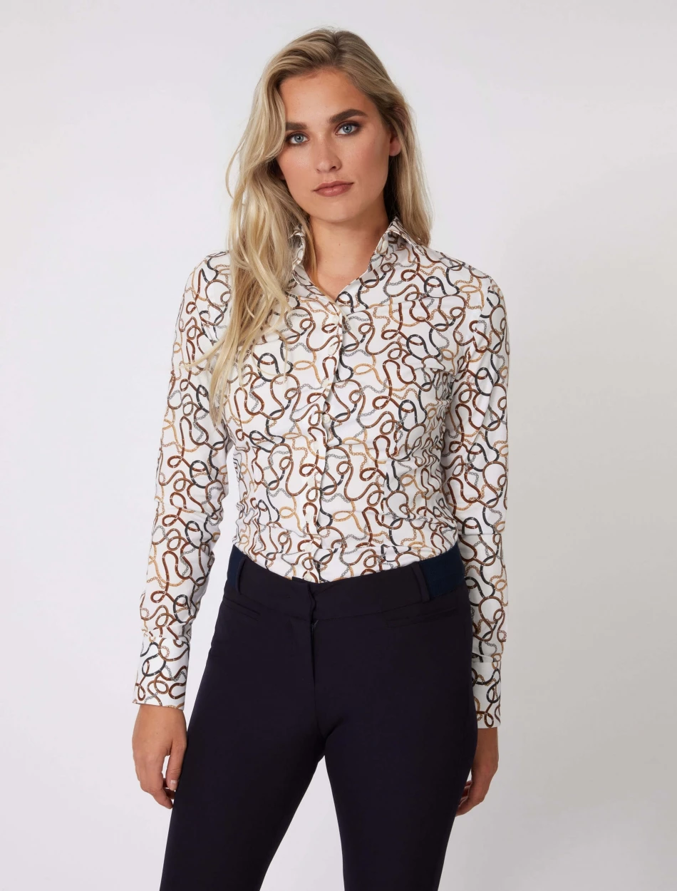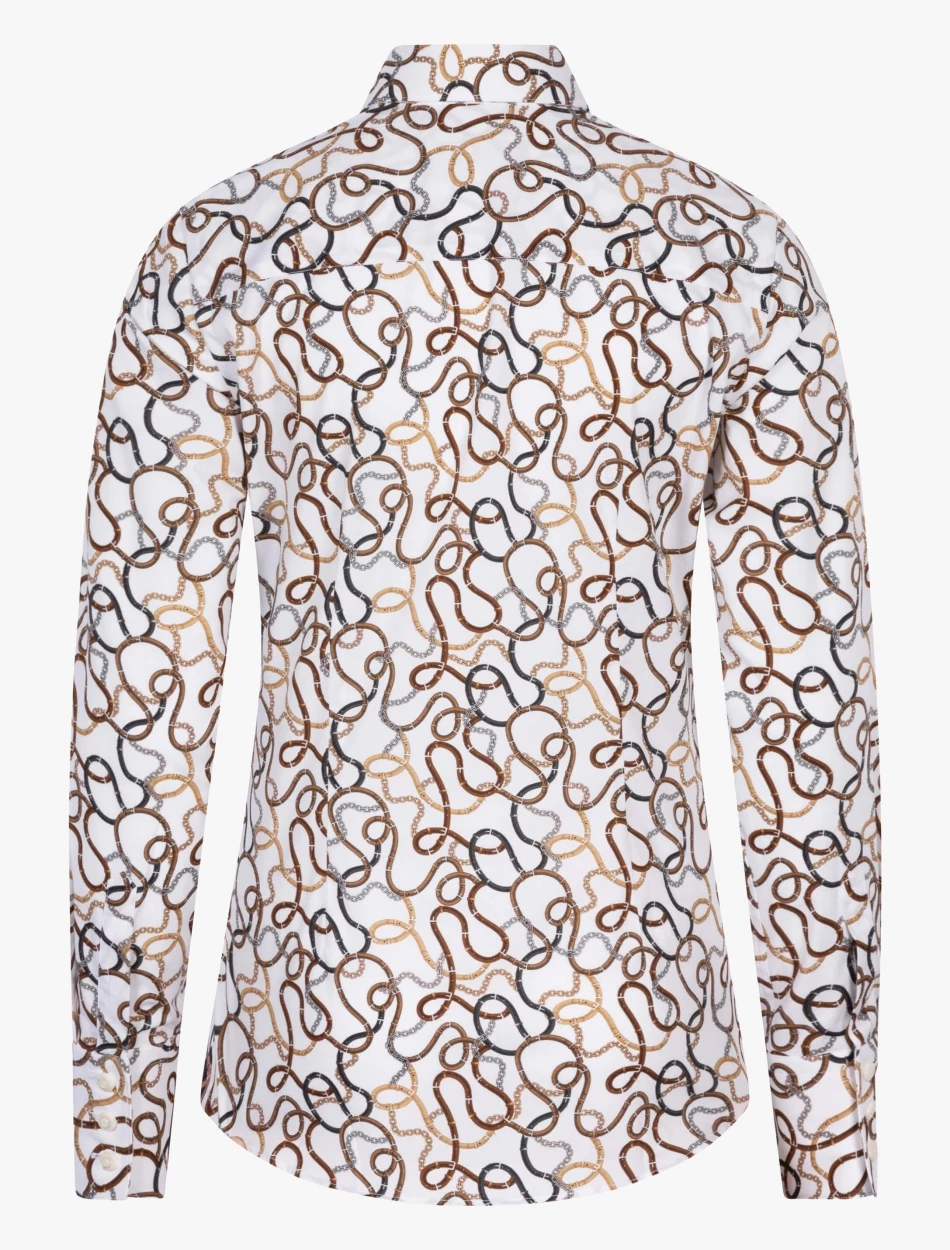Fenoma blouse heeft een opvallende chain print en is hierdoor echt een eyecatcher binnen onze collectie. De Fenoma blouse heeft een slim fit pasvorm en is gemaakt van een katoenblend met stretch. De coupenaden en lichte knopen geven de blouse een extra touch. Deze blouse is voorzien van een klassieke kraag en dubble manchet. Combineer onze Fenoma-blouse eindeloos met verschillende items uit onze collectie. Fenoma-blouse is verkrijgbaar in twee kleuren.