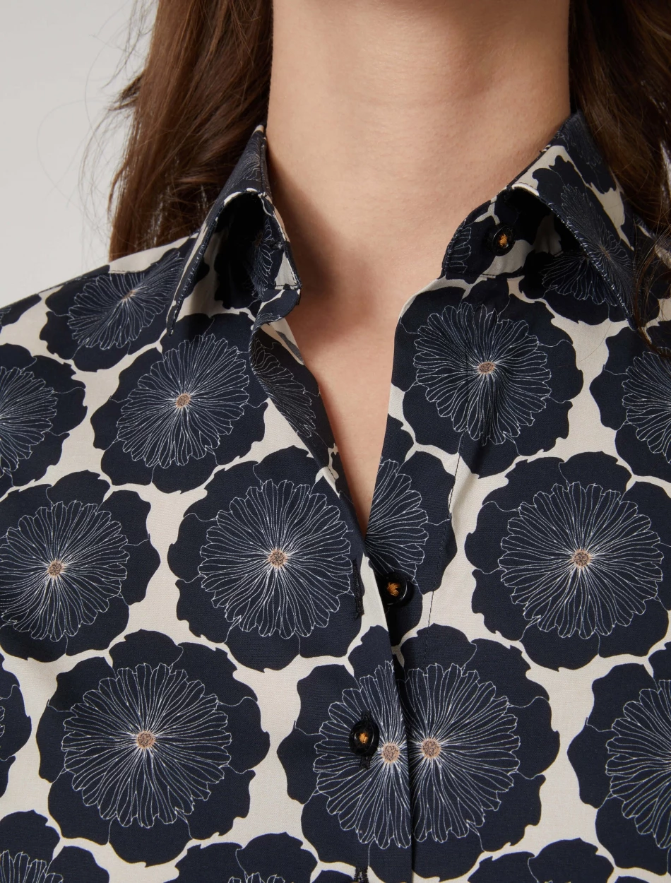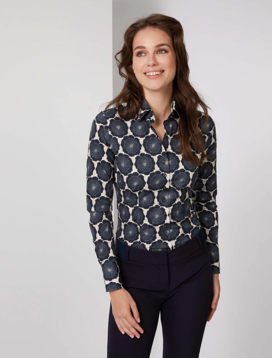 De Fiona blouse is vrolijke overall bloemenprint die heel makkelijk te combineren valt met ieder item uit onze collectie. De Fiona blouse heeft een slim fit pasvorm, een klassieke kraag en dubbel manchet. Combineer de Fiona blouse is met een pantalon en blazer voor een zakelijke look. Of combineer de Fiona blouse met een jeans voor een meer casual look. Deze blouse is verkrijgbaar is drie verschillende kleuren.