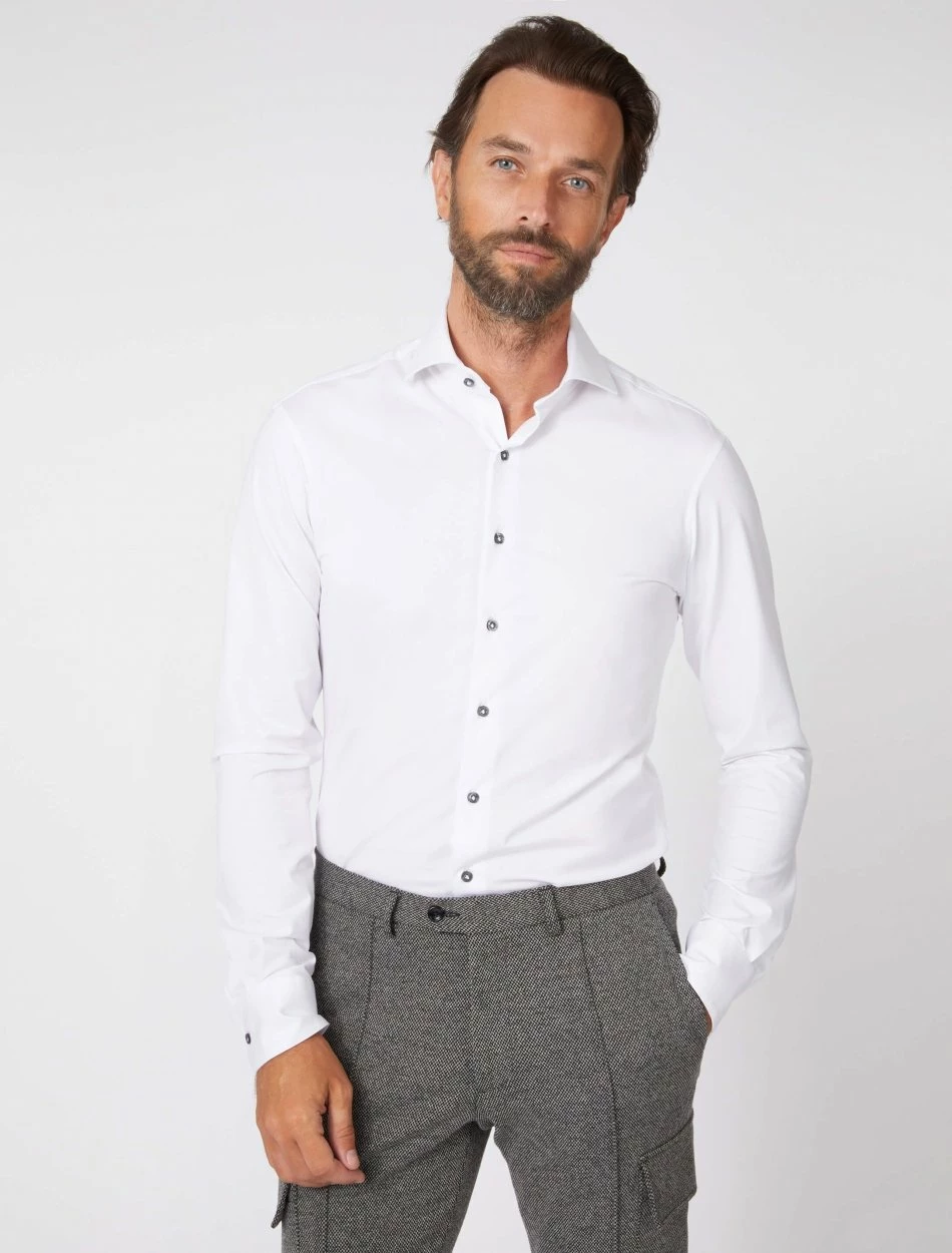 Franco overhemd is het perfecte stretch overhemd voor dit seizoen. Het Franco overhemd is gemaakt van een katoenblend in combinatie met stretch wat zorgt voor een hoog draagcomfort. Dit overhemd is voorzien van een widespread kraag en enkel manchet. De contrasterende knopen geven dit overhemd een extra touch. Combineer het Franco overhemd met je favoriete jeans of pantalon voor een complete look. Het Franco overhemd is verkrijgbaar in drie kleuren.