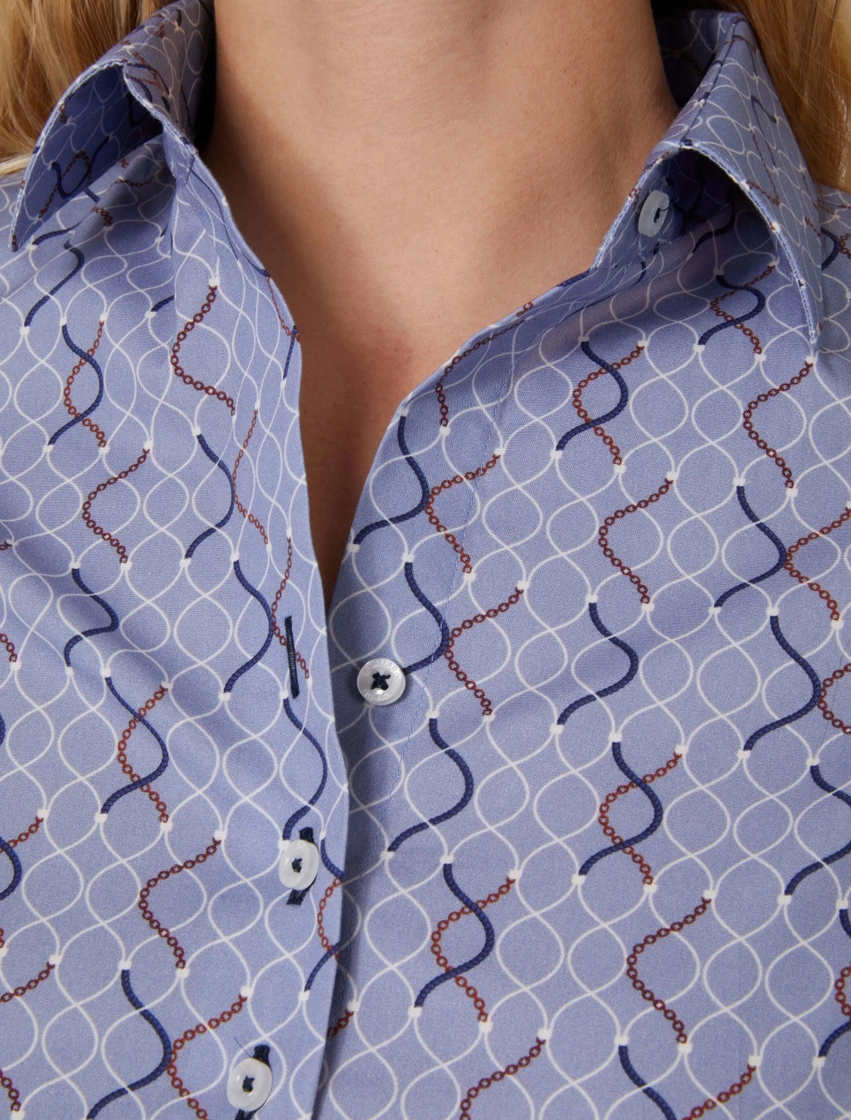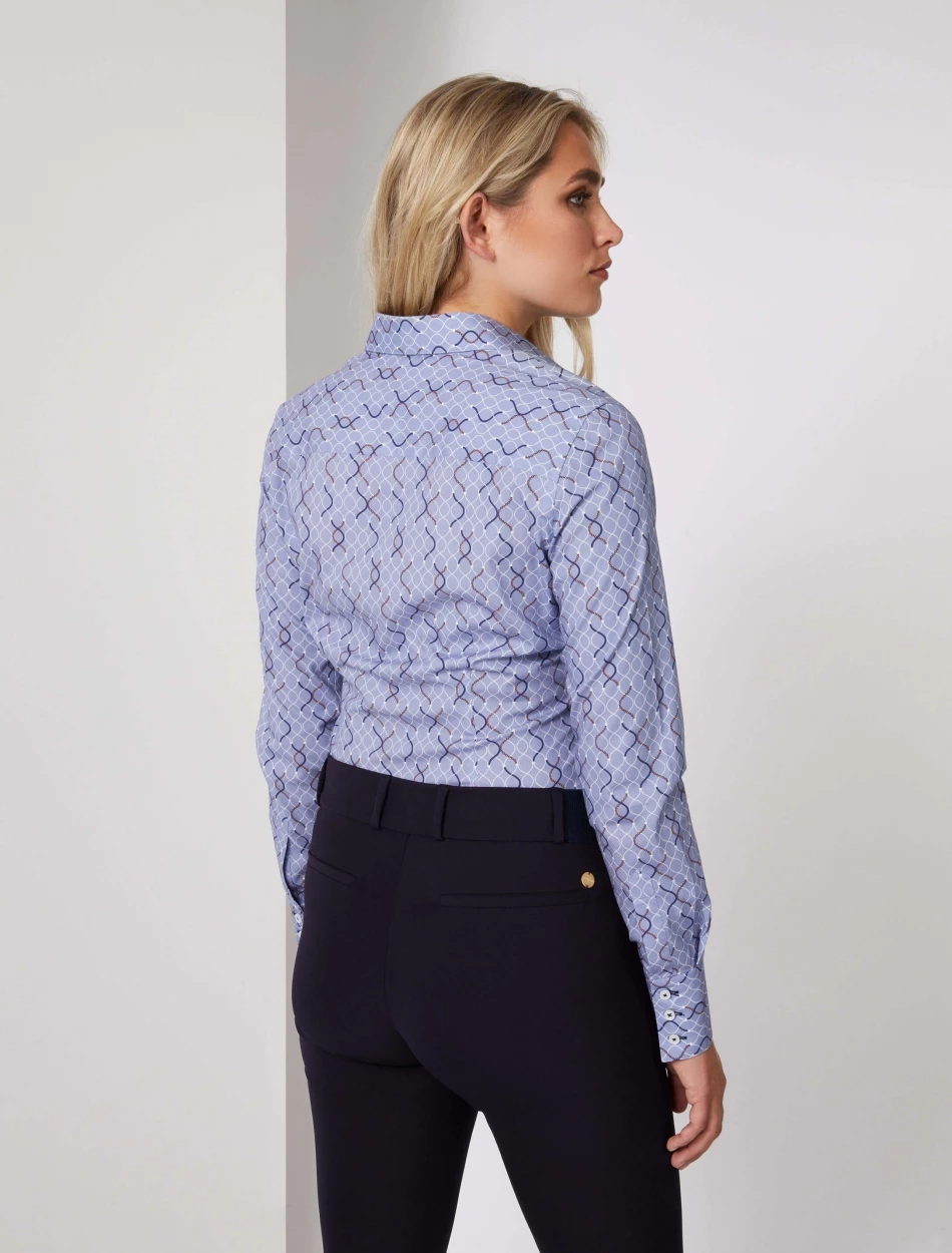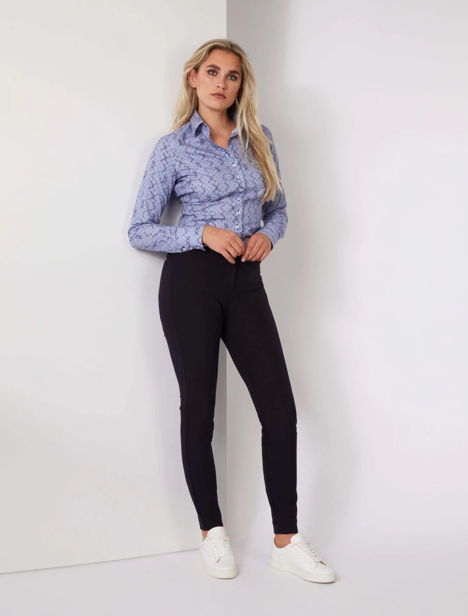 Isabella blouse is heeft een slim fit pasvorm en is gemaakt van een katoenblend met elastaan. De stretch in deze blouse zorgt ervoor dat de blouse netjes aansluit. De blouse is voorzien van coupenaden wat zorgt voor een vrouwelijk silhouet. De klassieke kraag en de witte knoopjes geven deze blouse een speelse twist. Combineer de Isabella blouse met een pantalon en blazer voor een complete look. De Isabella blouse is verkrijgbaar in drie kleuren.