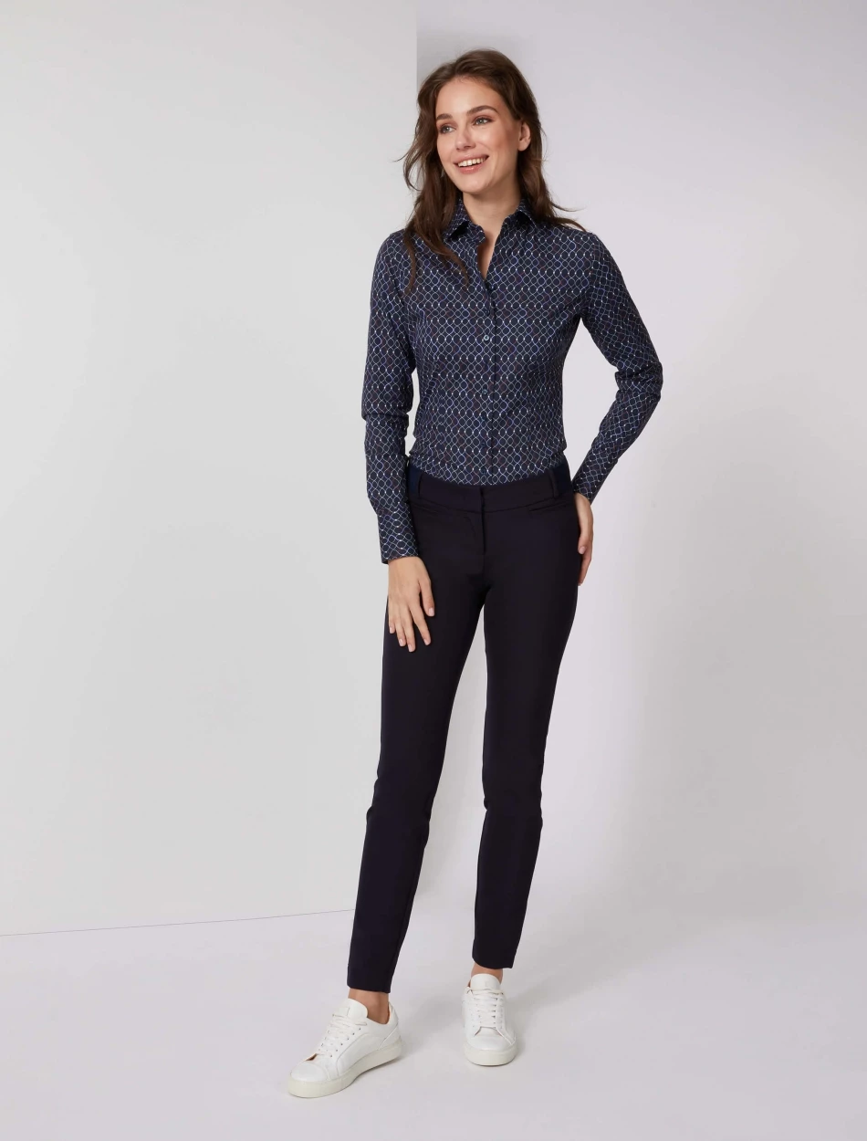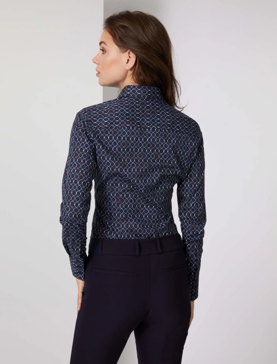Isabella blouse is heeft een slim fit pasvorm en is gemaakt van een katoenblend met elastaan. De stretch in deze blouse zorgt ervoor dat de blouse netjes aansluit. De blouse is voorzien van coupenaden wat zorgt voor een vrouwelijk silhouet. De klassieke kraag en de witte knoopjes geven deze blouse een speelse twist. Combineer de Isabella blouse met een pantalon en blazer voor een complete look. De Isabella blouse is verkrijgbaar in drie kleuren.