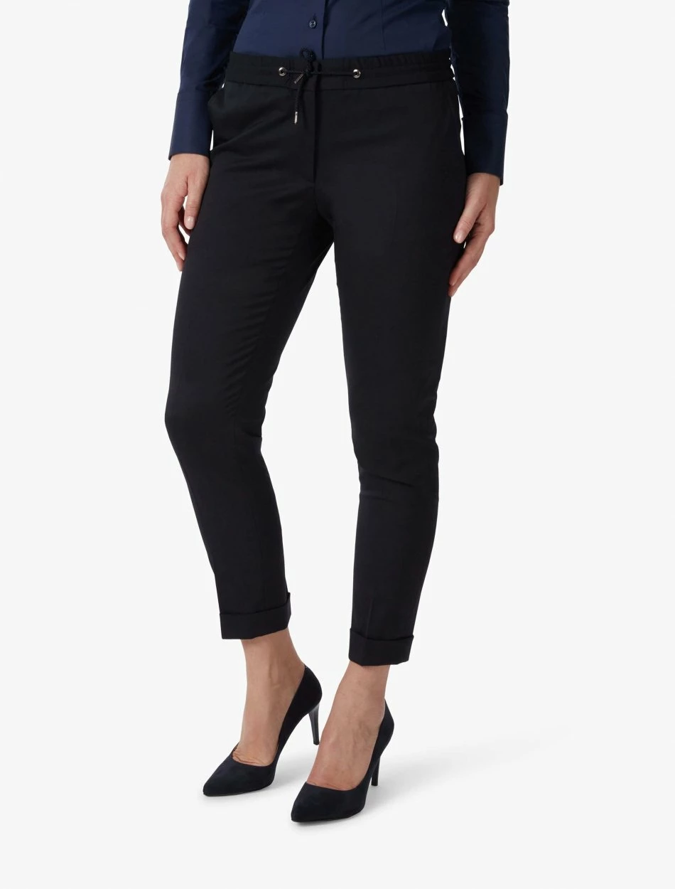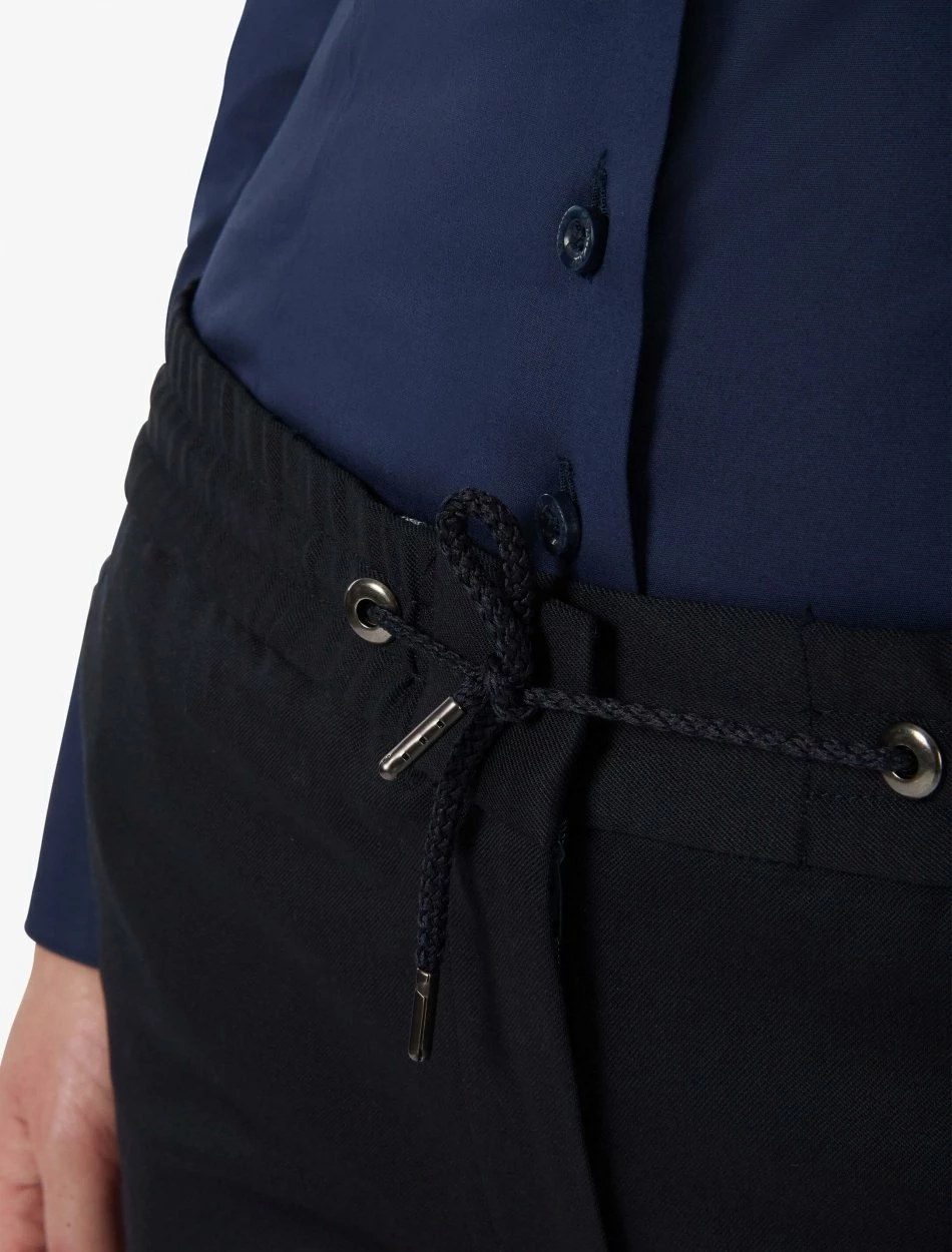 Lauria-broek is de perfecte pantalon voor een zakelijke look. Lauria-broek heeft een regular fit en is gemaakt van een wolblend. De elastiekenband zorgt voor een comfortabele fit. De vetersluiting en steek zakken geven de pantalon een moderne twist. Combineer onze Lauria-broek met een blazer en business blouse voor een complete look.