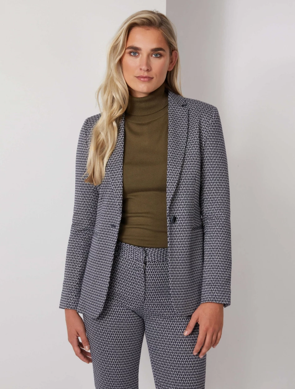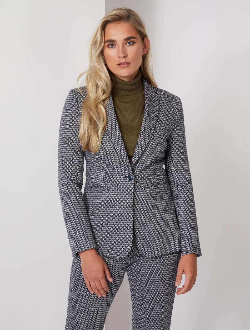 Louisa blazer is de perfecte geprinte blazer voor dit seizoen. De Louisa blazer is gemaakt van een stretch kwaliteit, waardoor de blazer een comfortabele fit heeft. Deze klassieke single breasted blazer is perfect te combineren met de bijpassende Louisa pantalon. De Louisa blazer is verkrijgbaar in twee kleuren.