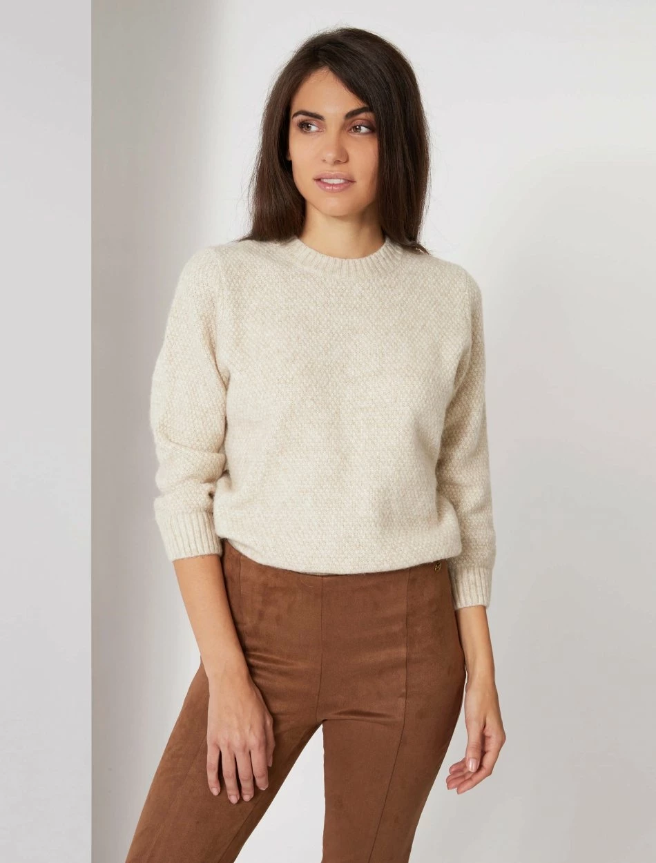 Marita trui is gemaakt van een rijke wolblend wat zacht en comfortabel aanvoelt. Marita trui heeft een regular fit en een ronde hals. Het gemêleerde effect geeft de trui een speelse twist. Onze Marita trui kan eindeloos gecombineerd worden met een pantalon of jeans. De Marita trui is verkrijgbaar in meerdere kleuren.