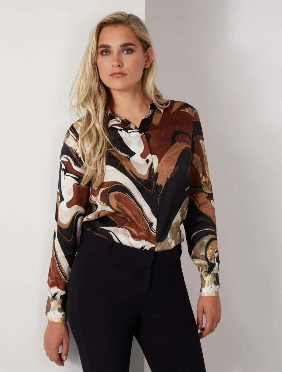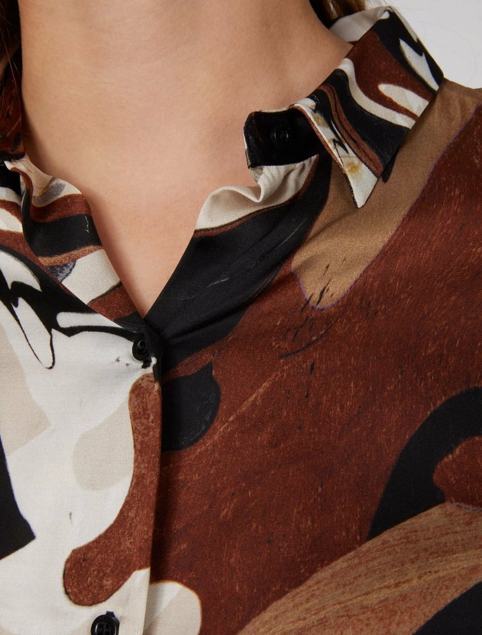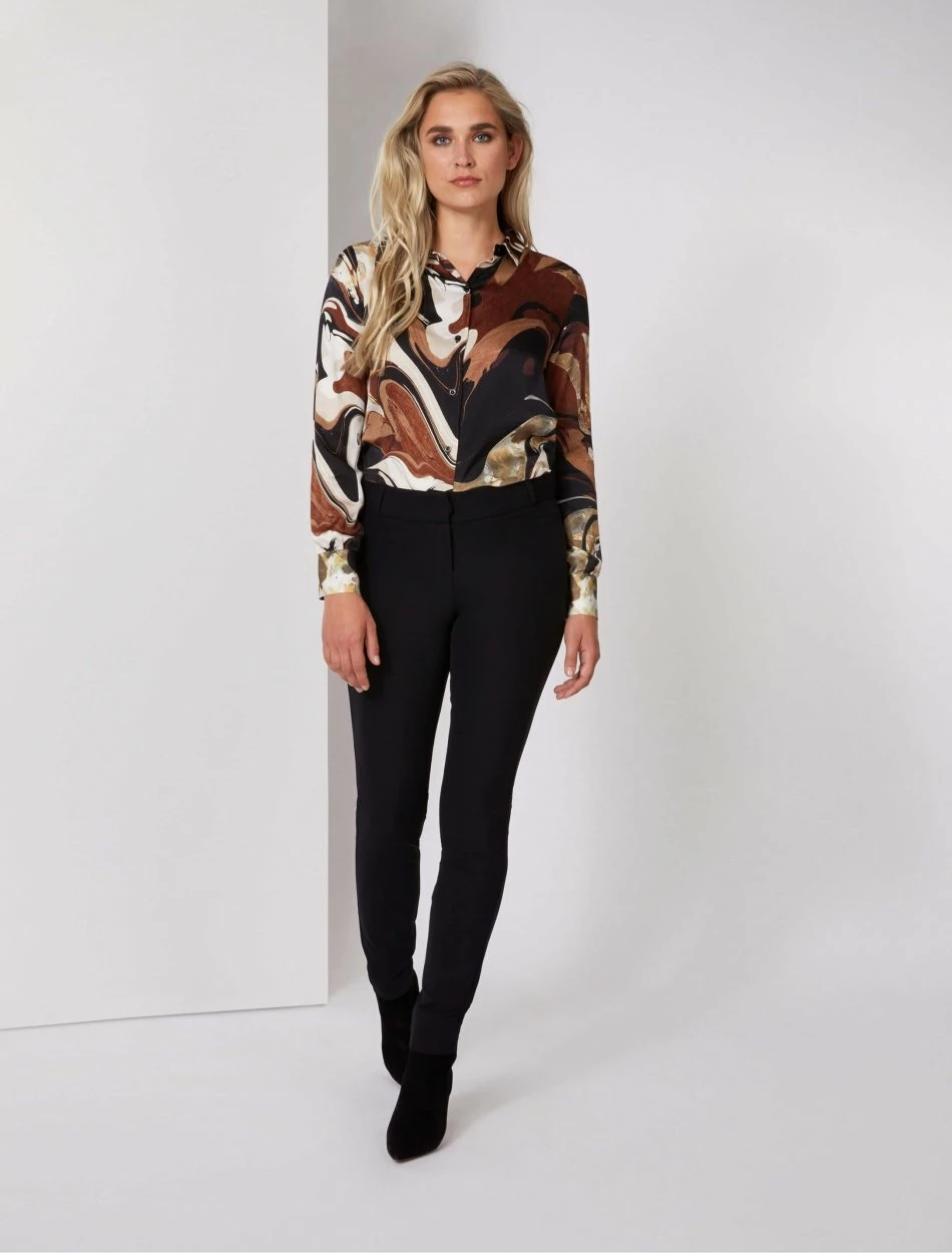 Marlina blouse heeft een uitgesproken overall marble print. De Marline blouse heeft een loose fit en is gemaakt van een 100% viscose. Viscose is kreukvrij en voelt luchtig aan. De achterkant van de blouse is iets langer waardoor de blouse zowel in als uit de pantalon kan worden gedragen. Combineer de Marlina blouse met een pantalon of rok voor een complete look. De Marlina blouse is verkrijgbaar in meerdere kleuren.