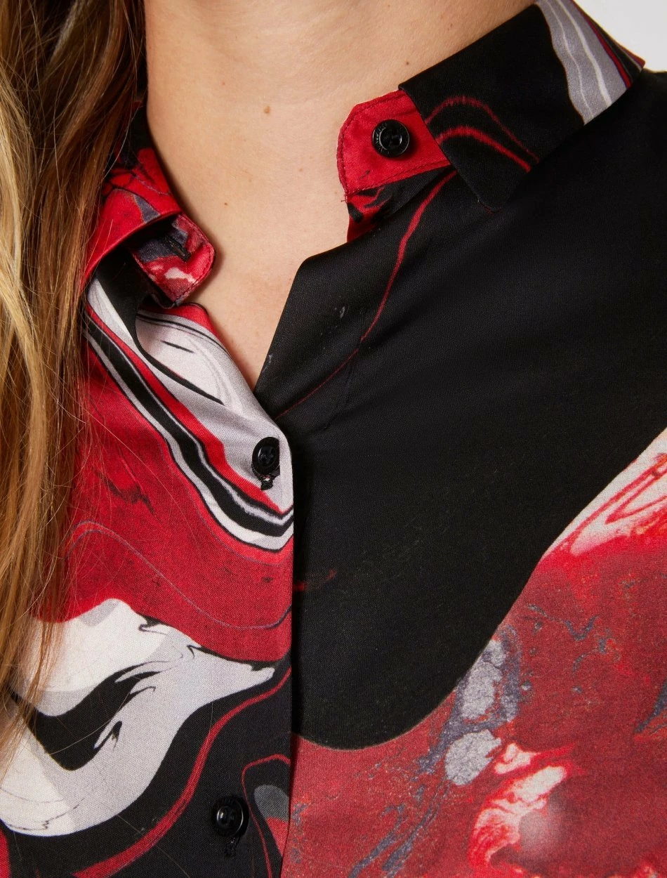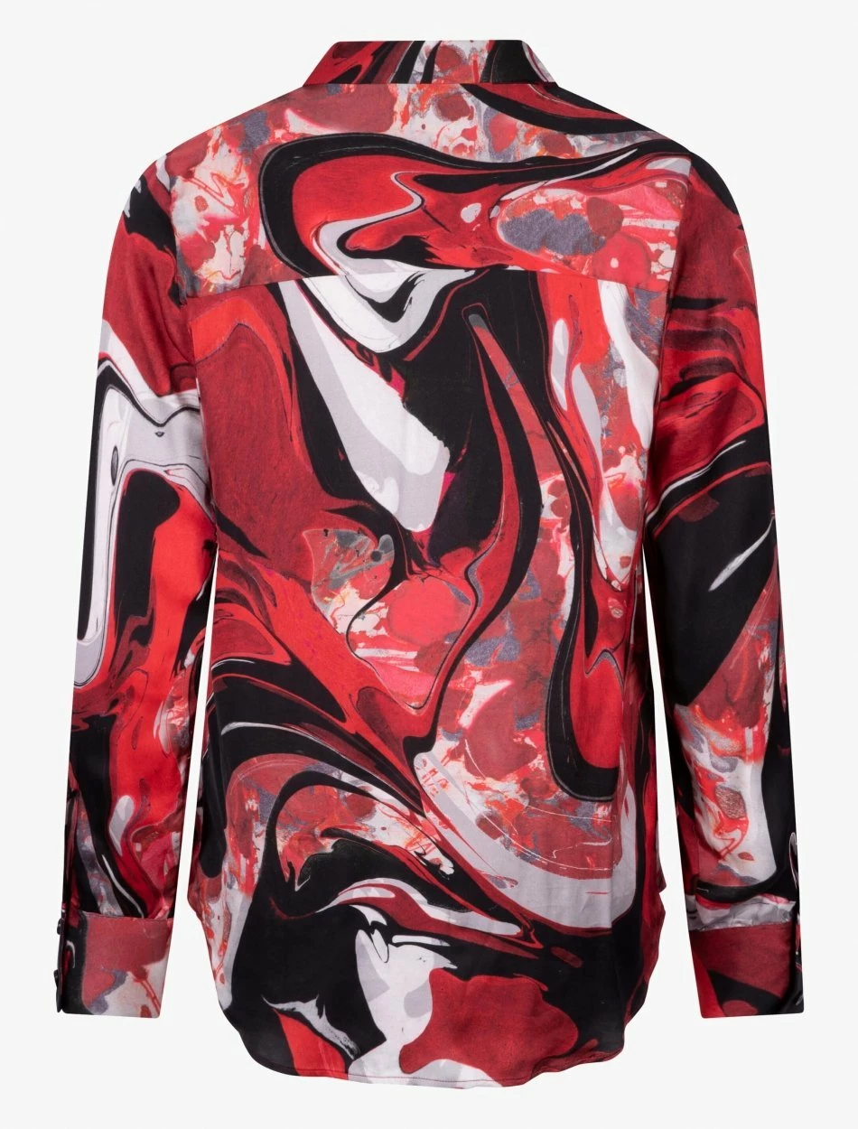 Marlina blouse heeft een uitgesproken overall marble print. De Marline blouse heeft een loose fit en is gemaakt van een 100% viscose. Viscose is kreukvrij en voelt luchtig aan. De achterkant van de blouse is iets langer waardoor de blouse zowel in als uit de pantalon kan worden gedragen. Combineer de Marlina blouse met een pantalon of rok voor een complete look. De Marlina blouse is verkrijgbaar in meerdere kleuren.