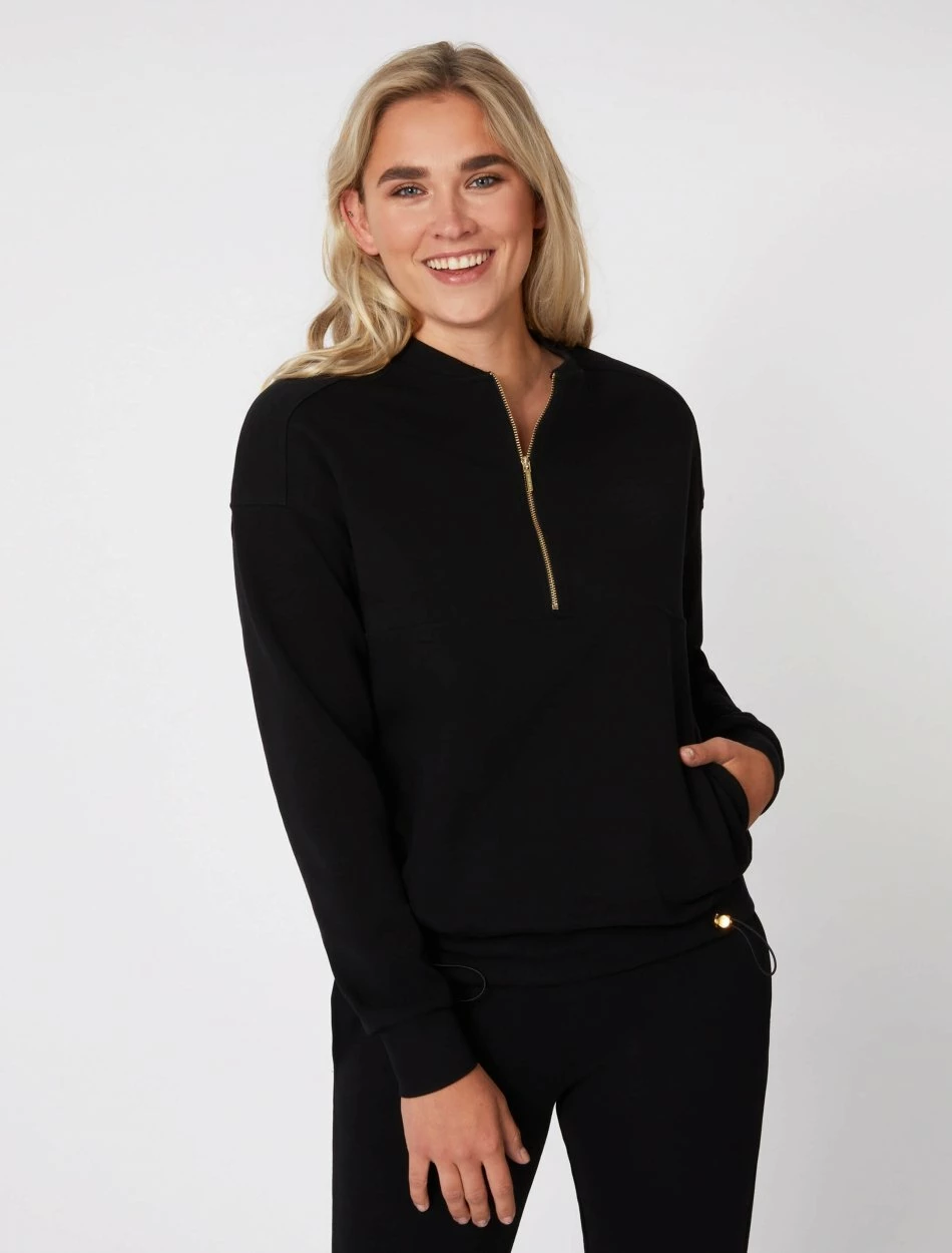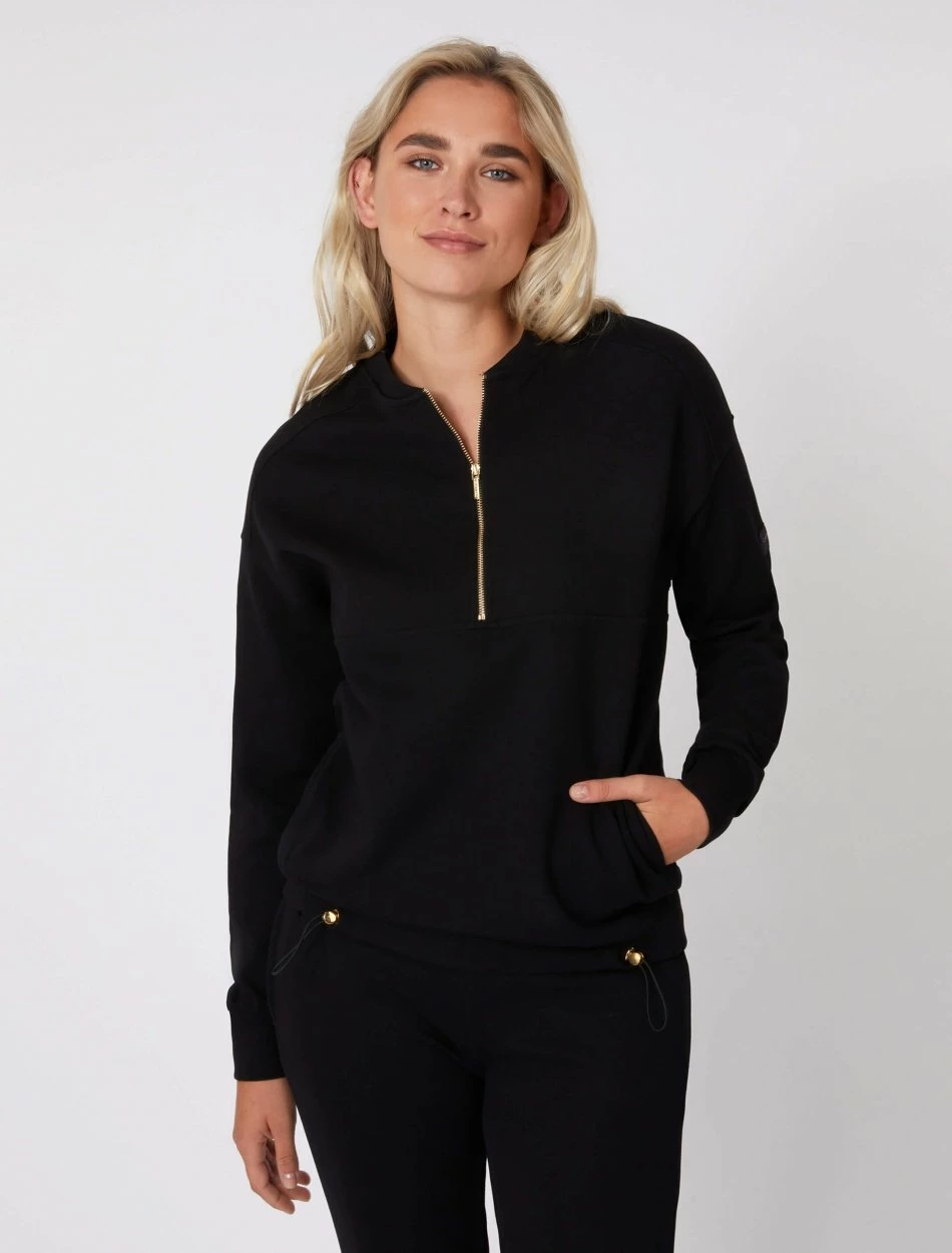 Marzella sweater is onmisbaar voor een casual look tijdens de herfst- en wintermaanden. De Marzella-sweater heeft een regular fit en is gemaakt van een katoenblend met elastaan. De extra stretch zorgt ervoor dat de sweater comfortabel en zacht aanvoelt. De gouden half-zip en aantrekkoordjes zorgen ervoor dat je deze sweater kan dragen op verschillende manieren, wat past bij iedere stijl. Combineer onze Marzella-sweater met een jogger of jeans voor een complete look. De Marzella-sweater is verkrijgbaar in vijf kleuren.