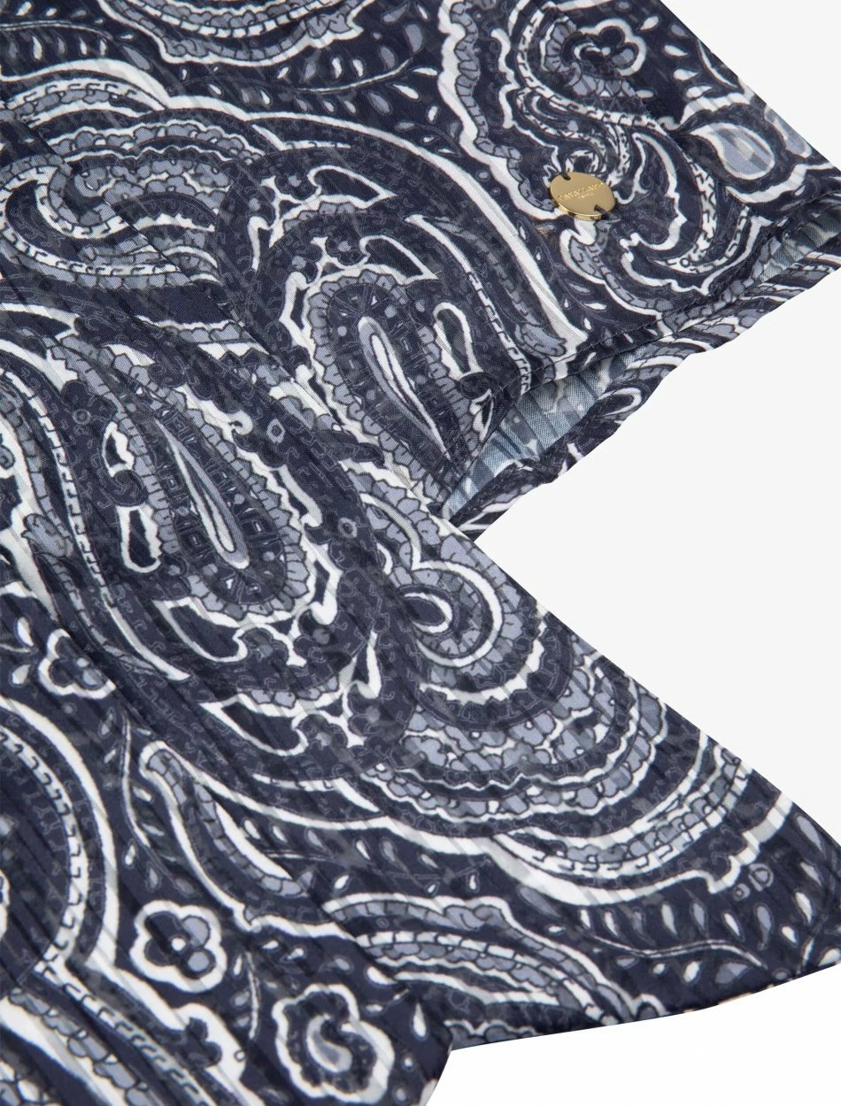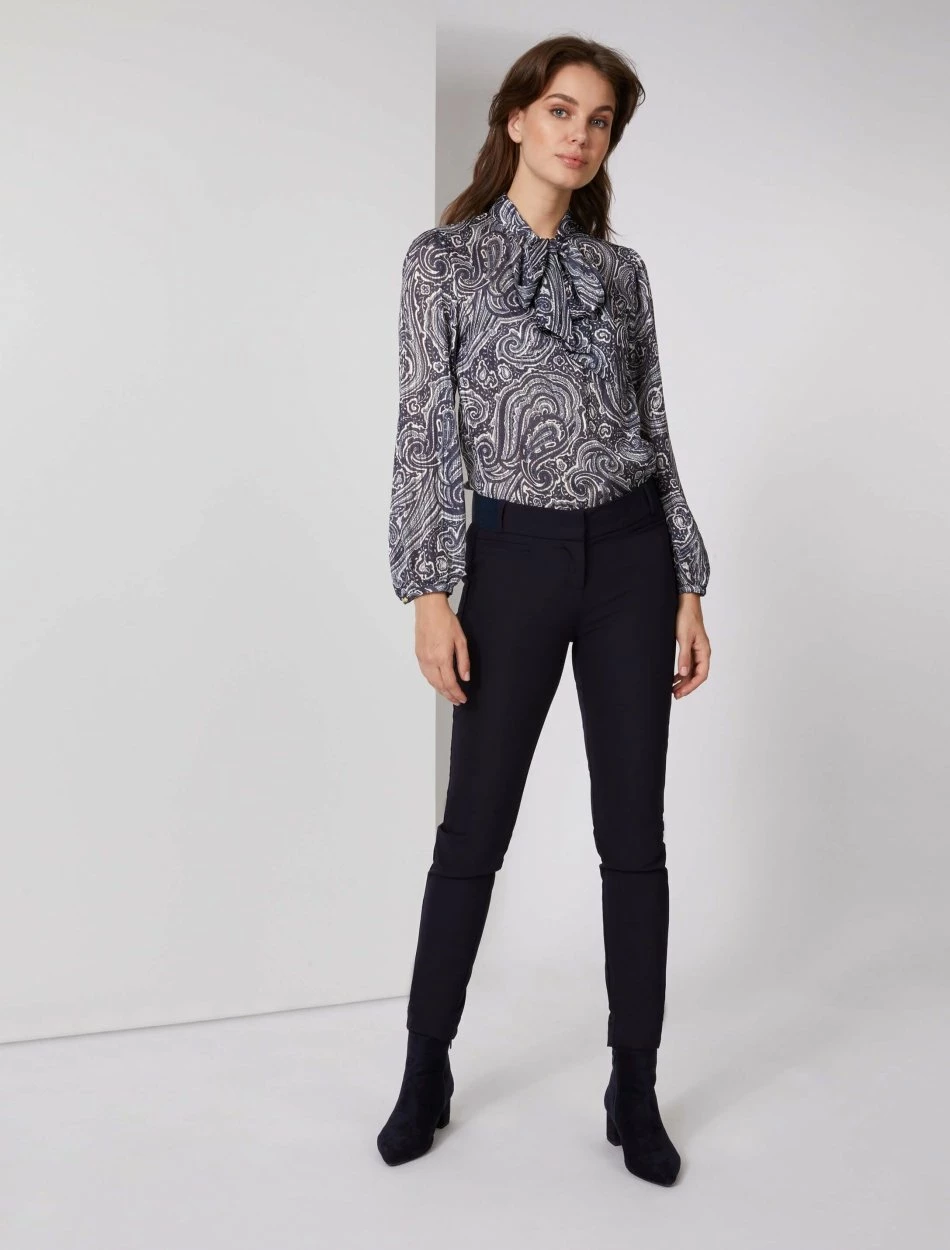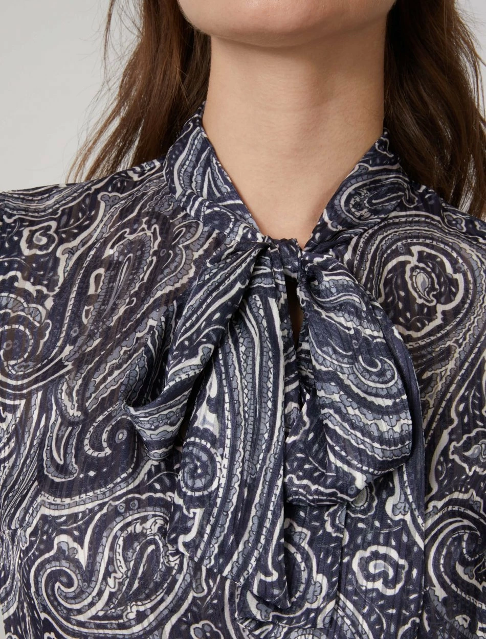 Noora blouse is een elegante dames blouse die gemakkelijk te combineren valt. De Noora-blouse heeft een overall paisley print en kan bij de hals worden gestrikt. Deze blouse heeft een regular fit en is gemaakt van 100% polyester. Combineer de Noora blouse met een chique pantalon voor een mooie zakelijke look. De Noora blouse is verkrijgbaar in twee kleuren. Let op: De blouse is transparant.