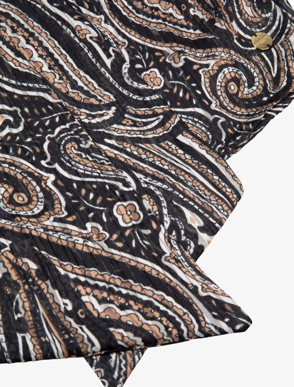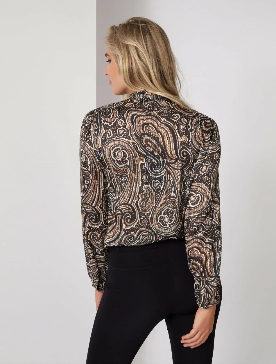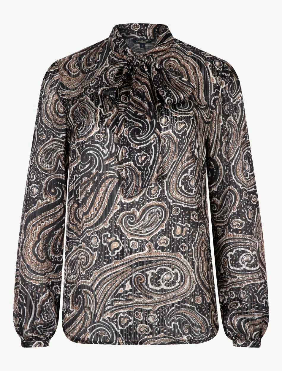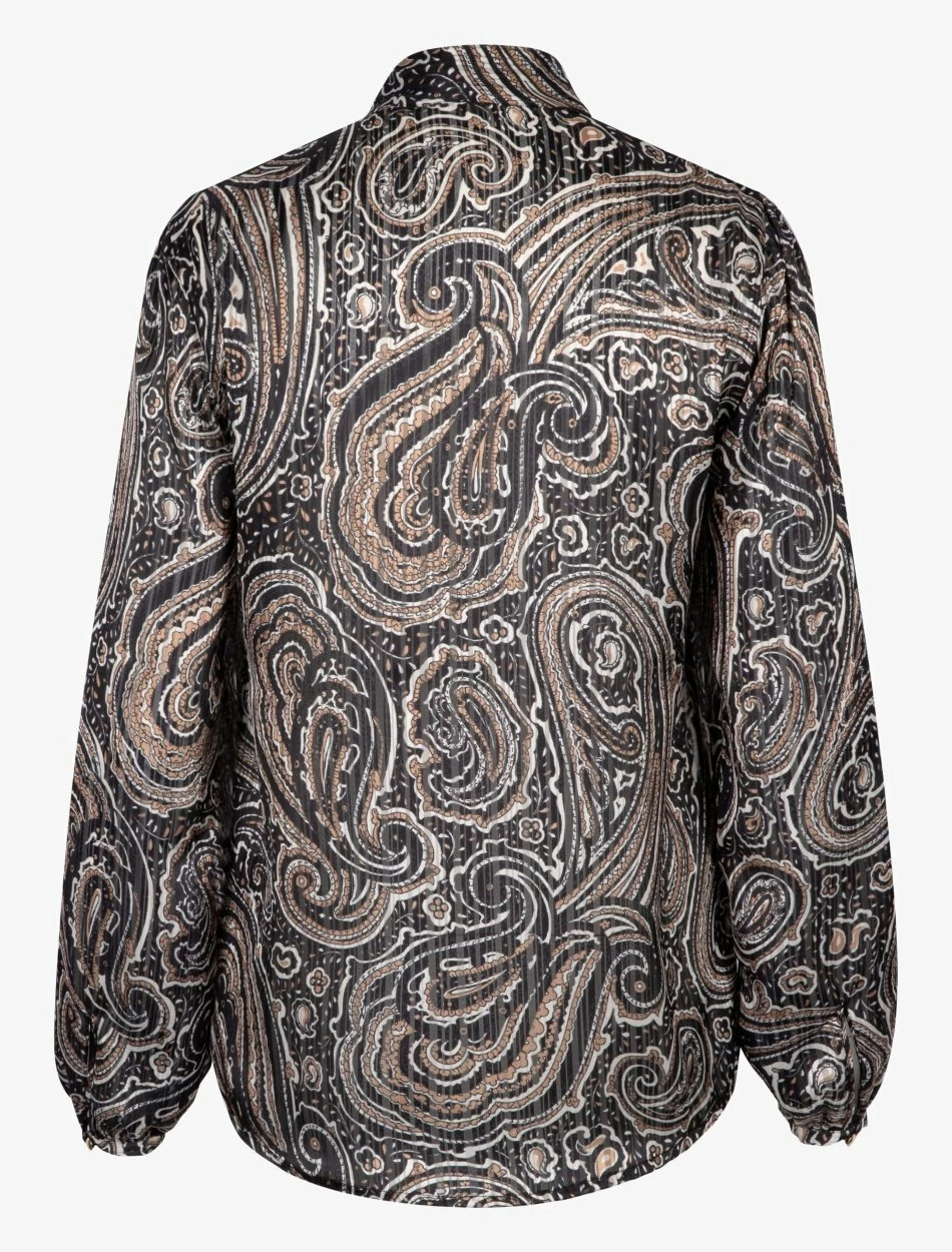 Noora blouse is een elegante dames blouse die gemakkelijk te combineren valt. De Noora-blouse heeft een overall paisley print en kan bij de hals worden gestrikt. Deze blouse heeft een regular fit en is gemaakt van 100% polyester. Combineer de Noora blouse met een chique pantalon voor een mooie zakelijke look. De Noora blouse is verkrijgbaar in twee kleuren. Let op: De blouse is transparant.
