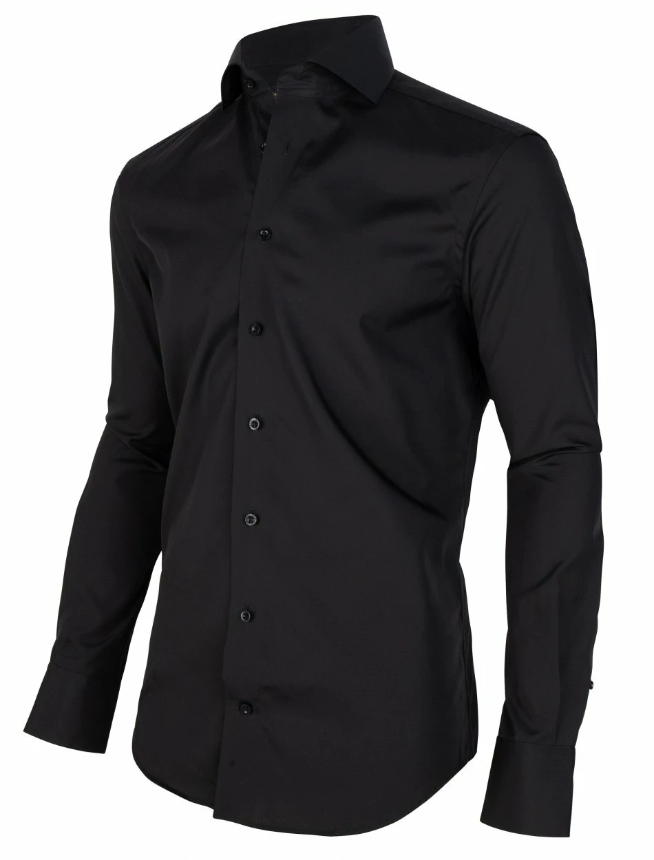 Een onmisbare essential die het perfect doet bij iedere gelegenheid. Dit klassieke zwarte business overhemd is gemaakt van two ply katoen en heeft een slim fit. Dit NOS overhemd is voorzien van een widespread kraag en enkele manchetten.