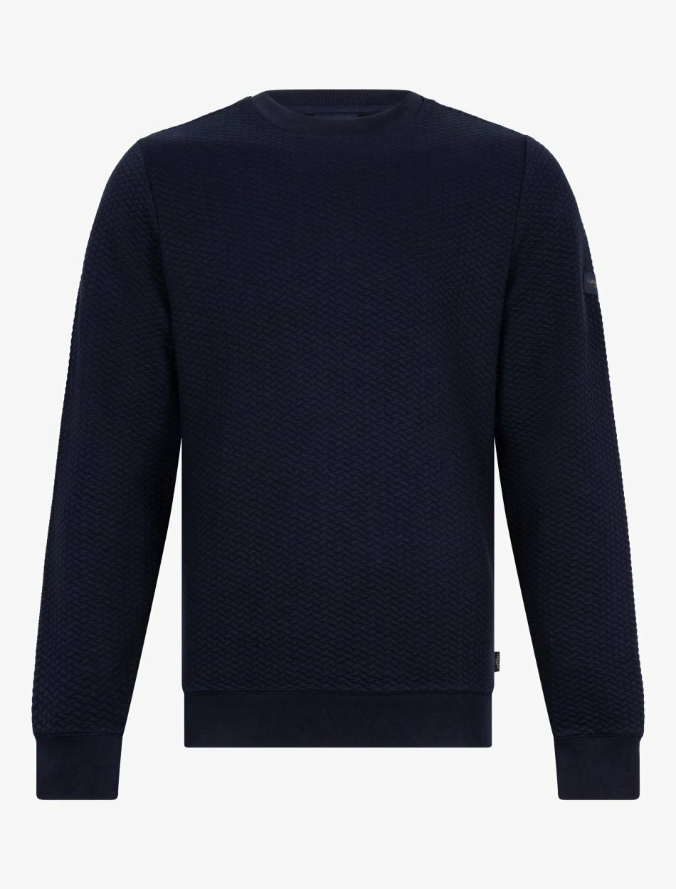 Nuovo Nero R-neck sweater heeft een regular fit en is gemaakt van een katoenblend. Door de hoge percentage elastaan heeft de sweater veel stretch en voel het comfortabel aan. De badge op de mouw geeft deze trui een stoere twist. Combineer de Nuovo Nero R-neck sweater met een jeans of chino voor een complete look.