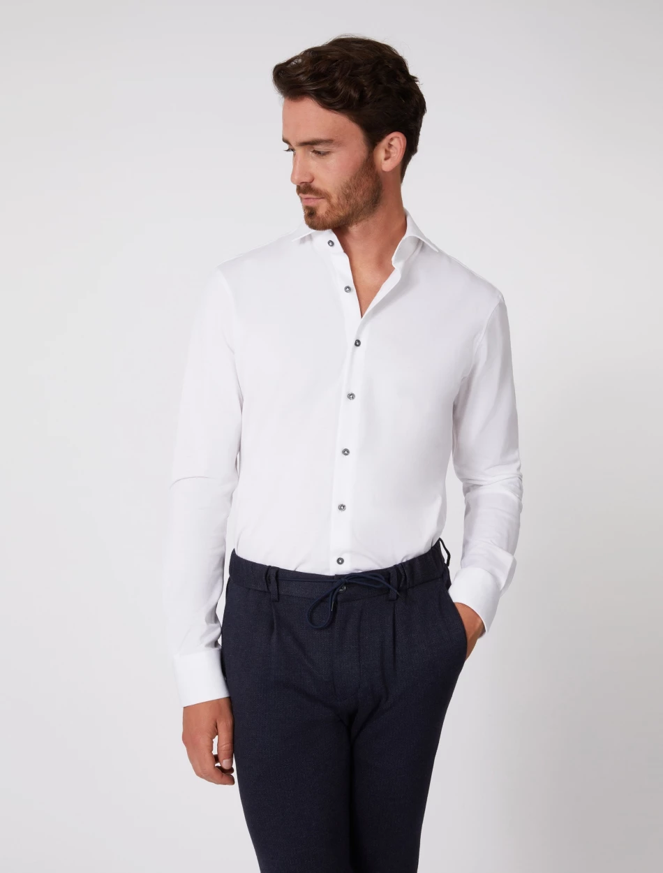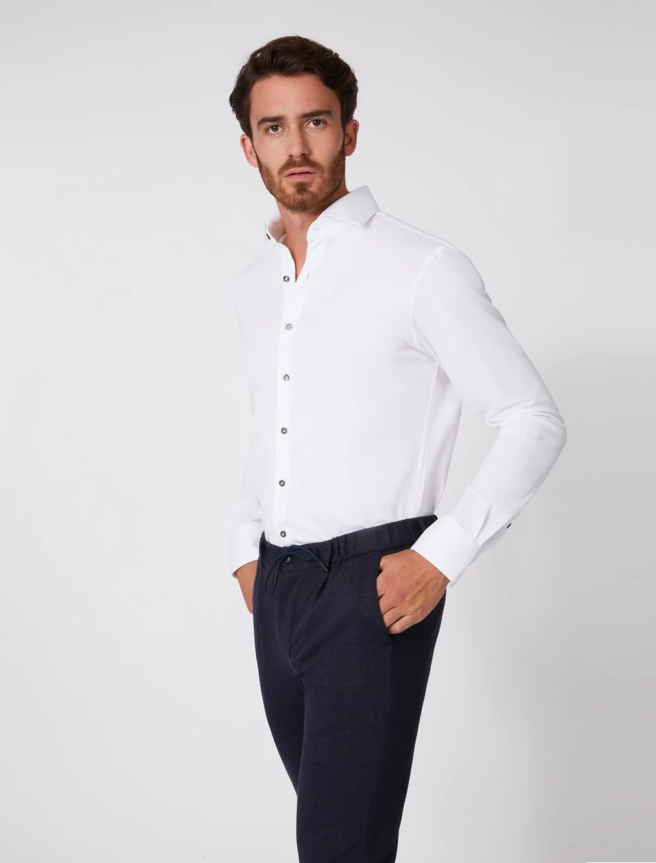 Dit overhemd is een absolute musthave. Het Piquo overhemd is een comfortabel overhemd gemaakt van katoen in een jersey kwaliteit. Dit zorgt voor een fijn en soepel draagcomfort. Piquo overhemd heeft een regular fit en een widespread kraag. De contrasterende knopen geven dit overhemd een extra touch. Dit overhemd is verkrijgbaar in meerdere kleuren.
