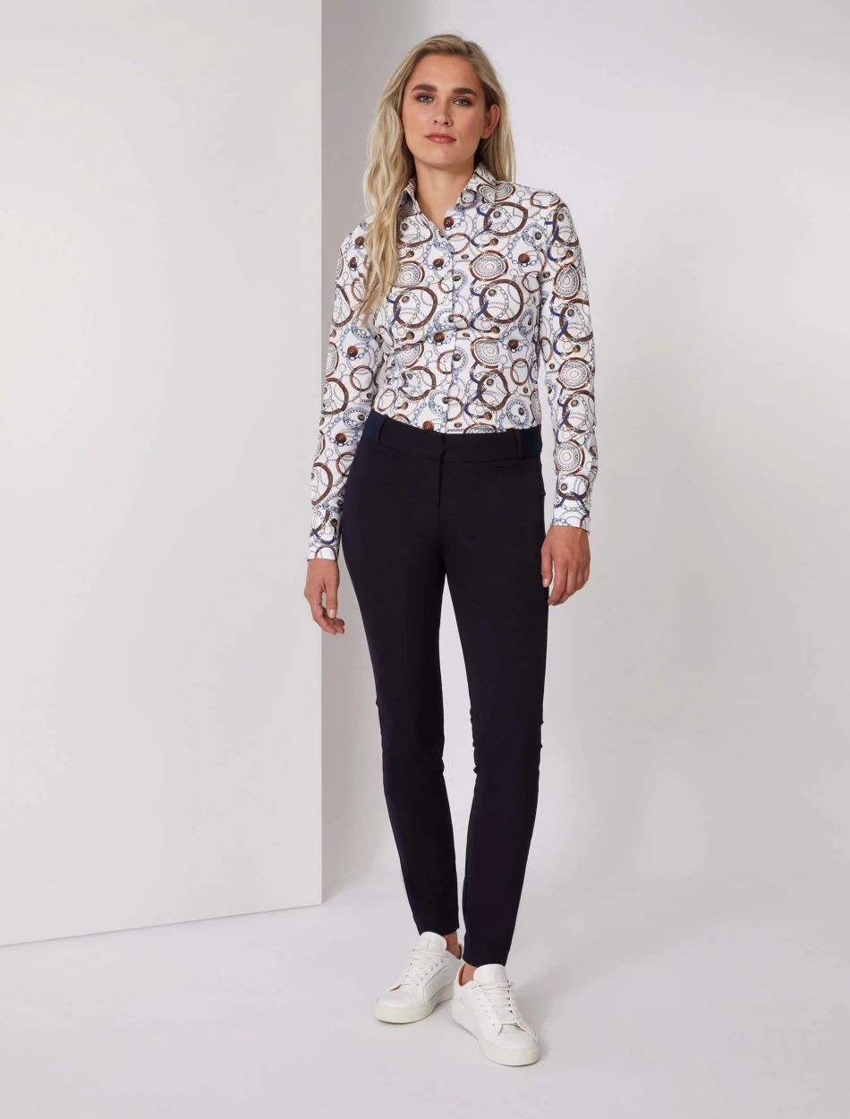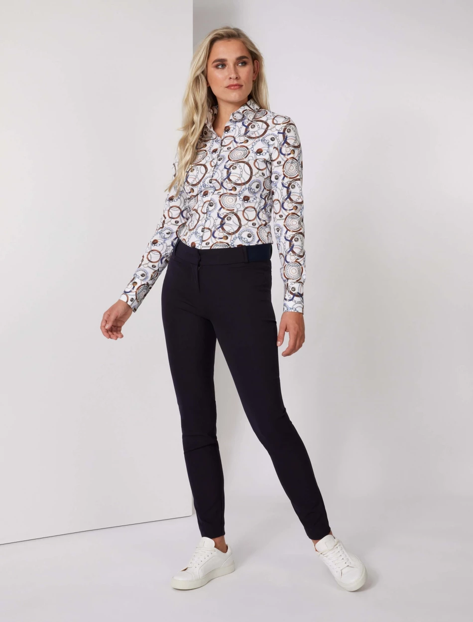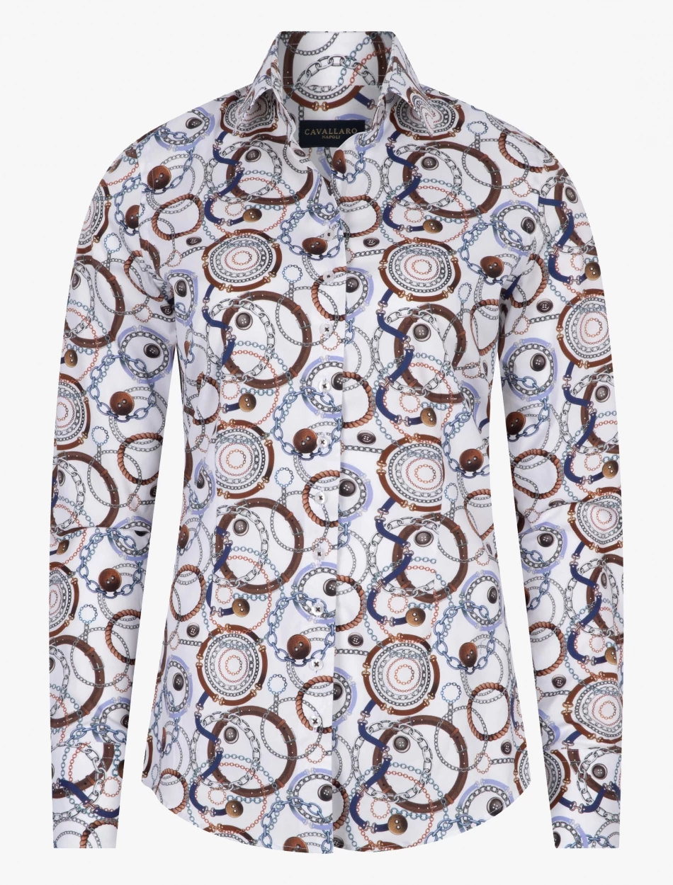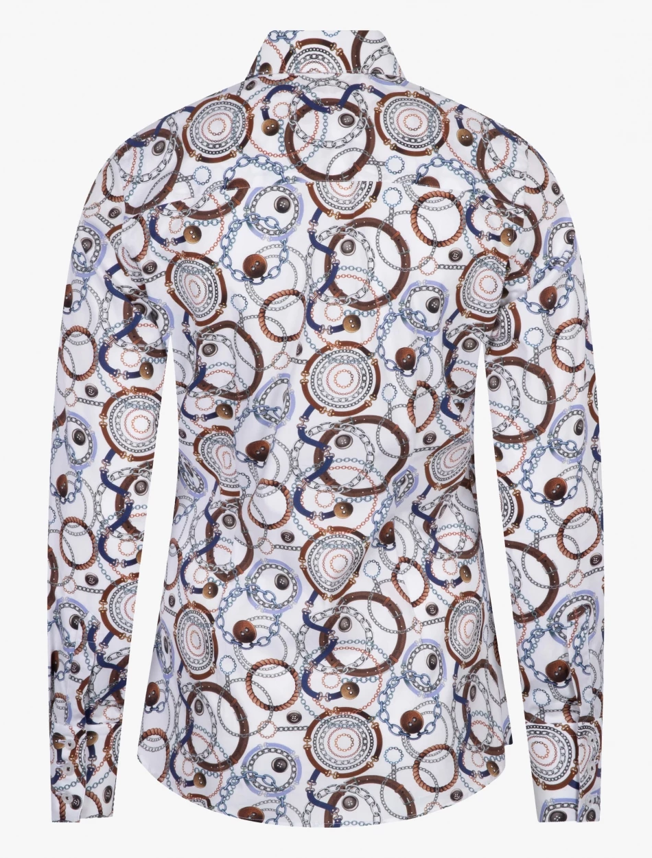 De Simona blouse met overall chain print kan niet ontbreken in je garderobe voor dit seizoen. Deze blouse heeft een slim fit pasvorm en is gemaakt van een katoenblend met stretch. Combineer de Simona blouse eindeloos met verschillende items uit onze collectie. De Simona blouse is verkrijgbaar in drie verschillende kleuren.