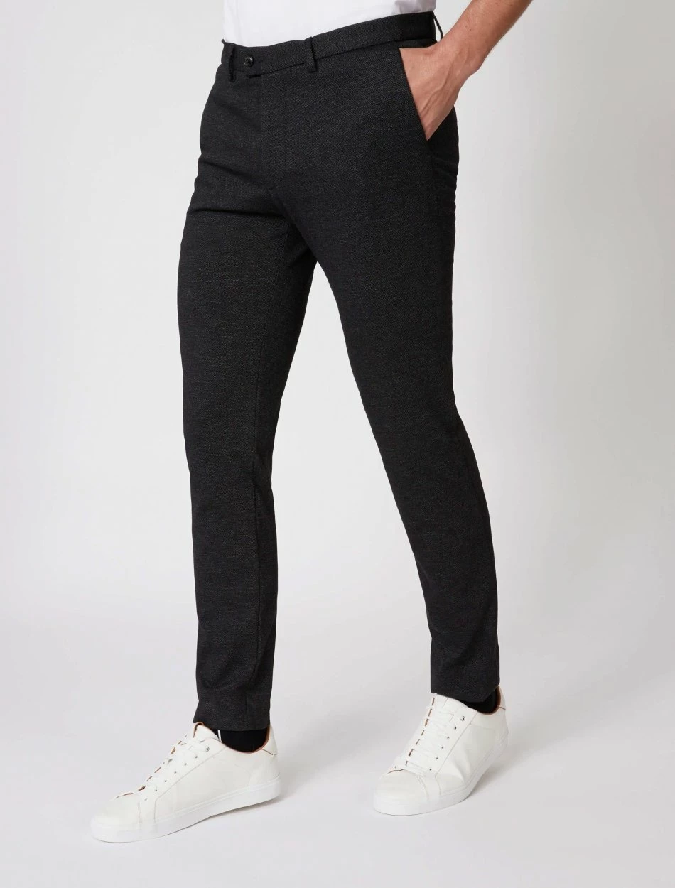 Stefano broek heeft een regular fit en is gemaakt van een viscoseblend. De viscoseblend zorgt ervoor dat de broek warm en comfortabel aanvoelt. Doordat de broek een hoog percentage elastaan heeft, zorgt dit ervoor dat de broek veel stretch heeft. De voorkant van de broek heeft twee steekzakken en de achterkant van de broek is voorzien van paspelzakken. De Stefano broek is gemakkelijk te combineren met een coltrui en of overhemd met colbert voor een complete look.
