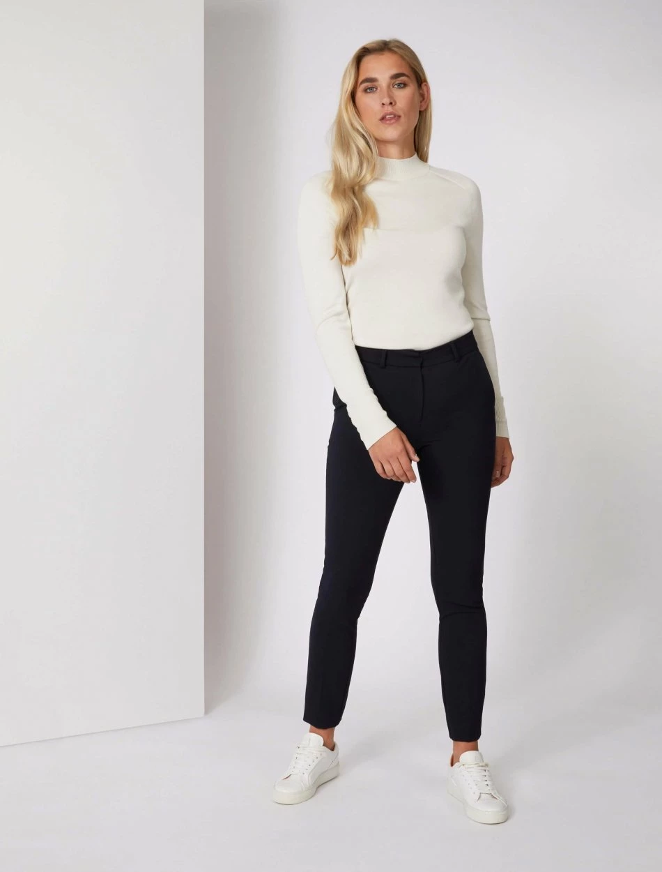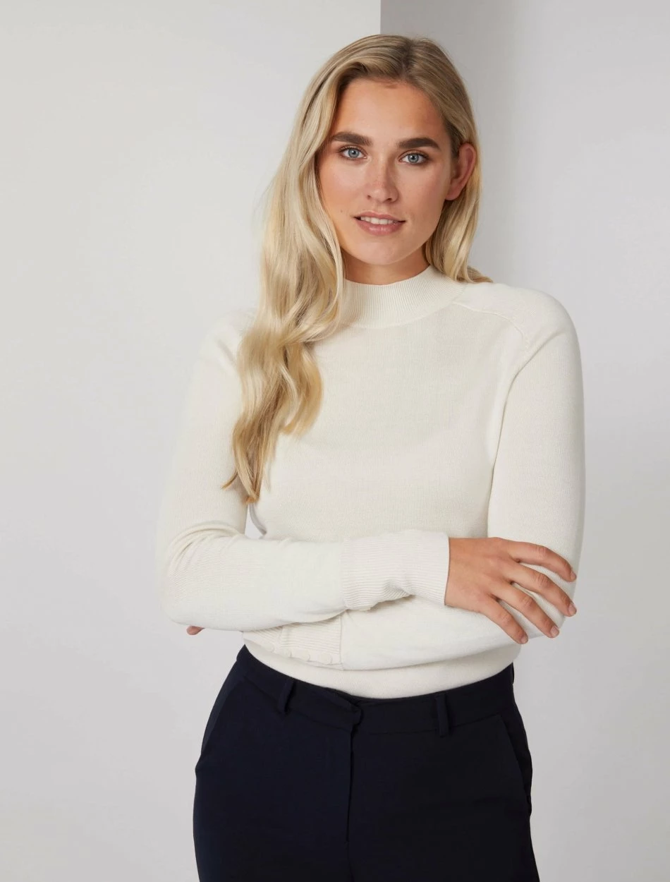 Susanna trui heeft een lagere col en heeft een slim fit pasvorm. De Susanna trui is gemaakt van een viscose blend wat ervoor zorgt de stof niet kreukt. De Susanna trui is ieder winterseizoen een bestseller in onze collectie en mag daardoor absoluut niet ontbreken in je garderobe. Combineer de Susanne trui met een blazer en pantalon voor een casual look. De Susanna trui is verkrijgbaar in vier kleuren.