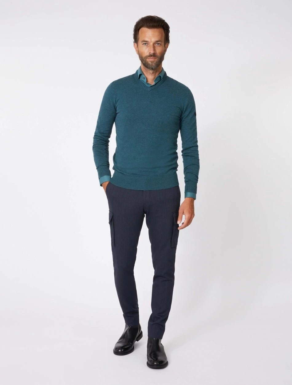 Een echte klassieker en onmisbaar voor elke man: de Tomasso V-neck trui is gemaakt van een comfortabele katoenmix, wat zorgt voor een aangenaam draagcomfort en een ideale pasvorm. De trui heeft een v-hals en is geschikt voor een casual combinatie met een jeans. Of ga voor een meer stijlvolle look en combineer de trui met een pantalon. De trui is verkrijgbaar in meerdere kleuren.
