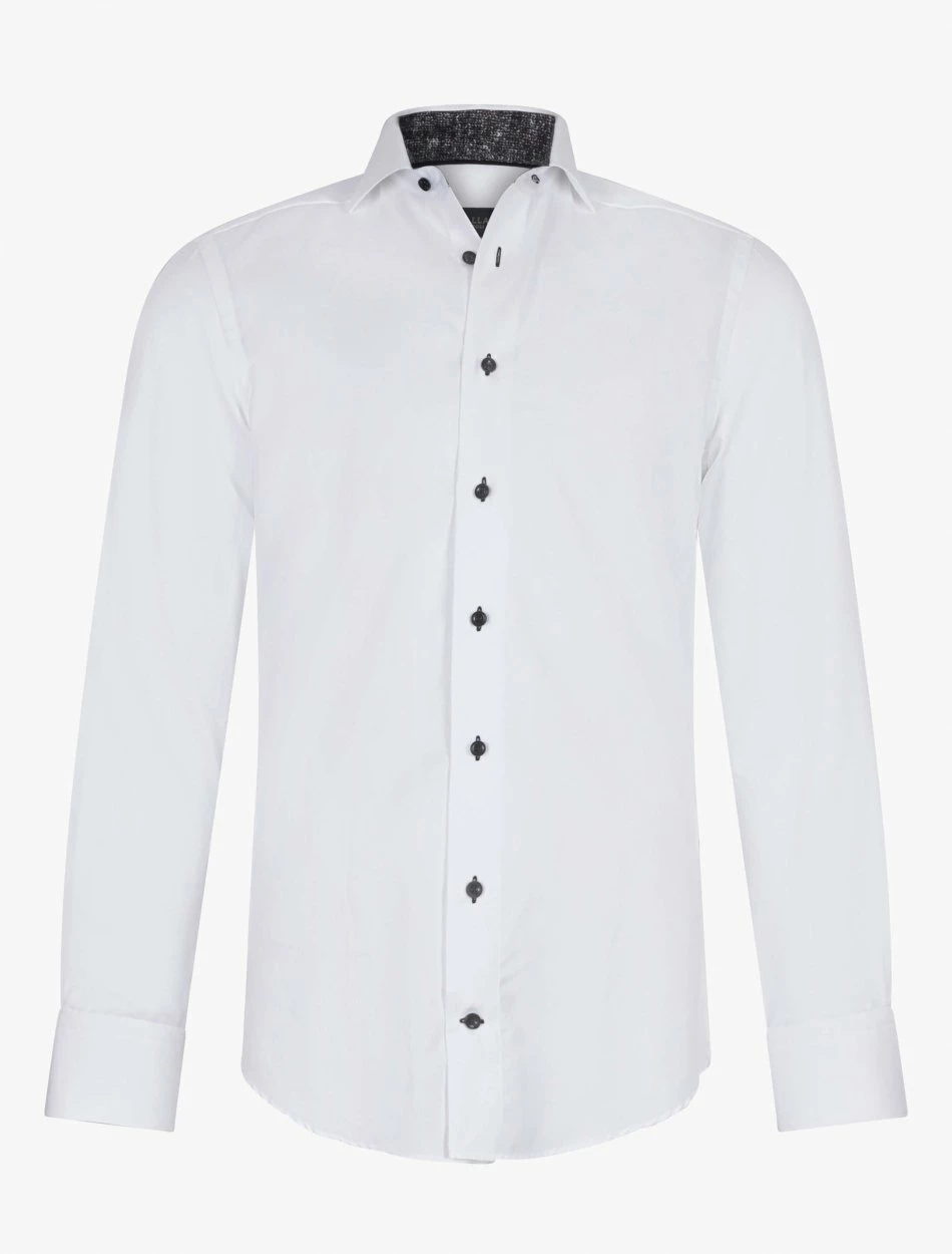 Vantiaco overhemd is het perfecte witte overhemd met een speelse twist. Het Vantiaco overhemd heeft een geprinte widespread kraag, contrasterende knopen en stickels. Het overhemd heeft een lichte structuur in de stof. Combineer het Vantiaco overhemd met een pantalon en colbert voor een complete winterse look.